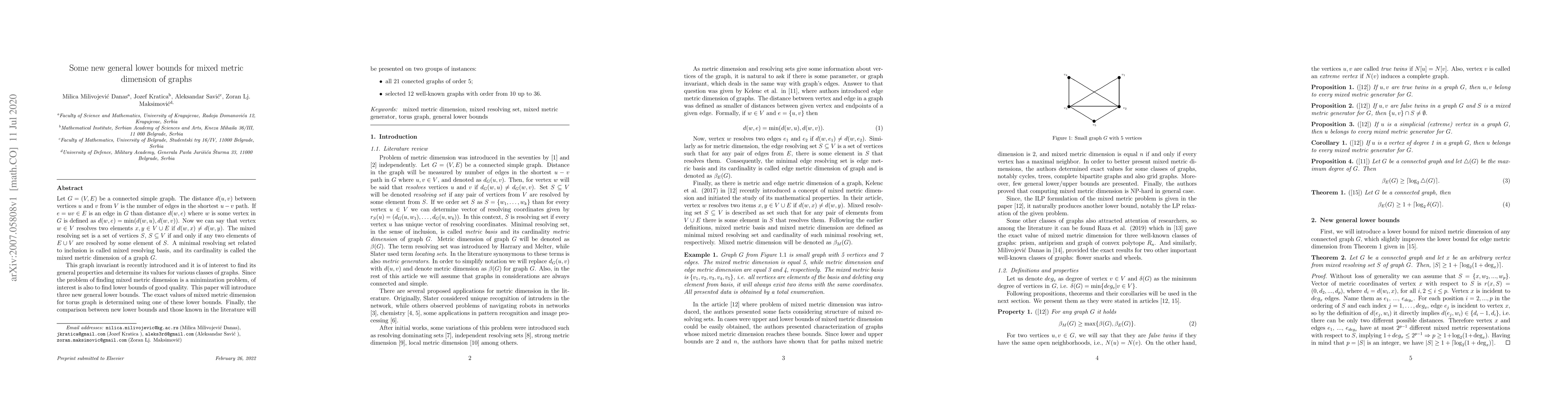 Let $G=(V,E)$ be a connected simple graph. The distance $d(u,v)$ between vertices $u$ and $v$ from $V$ is the number of edges in the shortest $u-v$ path. If $e=uv \in E$ is an edge in $G$ than distance $d(w,e)$ where $w$ is some vertex in $G$ is defined as $d(w,e)=\min(d(w,u),d(w,v))$. Now we can say that vertex $w \in V$ resolves two elements $x,y \in V \cup E$ if $d(w,x) \neq d(w,y)$. The mixed resolving set is a set of vertices $S$, $S\subseteq V$ if and only if any two elements of $E \cup V$ are resolved by some element of $S$. A minimal resolving set related to inclusion is called mixed resolving basis, and its cardinality is called the mixed metric dimension of a graph $G$. This graph invariant is recently introduced and it is of interest to find its general properties and determine its values for various classes of graphs. Since the problem of finding mixed metric dimension is a minimization problem, of interest is also to find lower bounds of good quality. This paper will introduce three new general lower bounds. The exact values of mixed metric dimension for torus graph is determined using one of these lower bounds. Finally, the comparison between new lower bounds and those known in the literature will be presented on two groups of instances: - all 21 conected graphs of order 5; - selected 12 well-known graphs with order from 10 up to 36.
