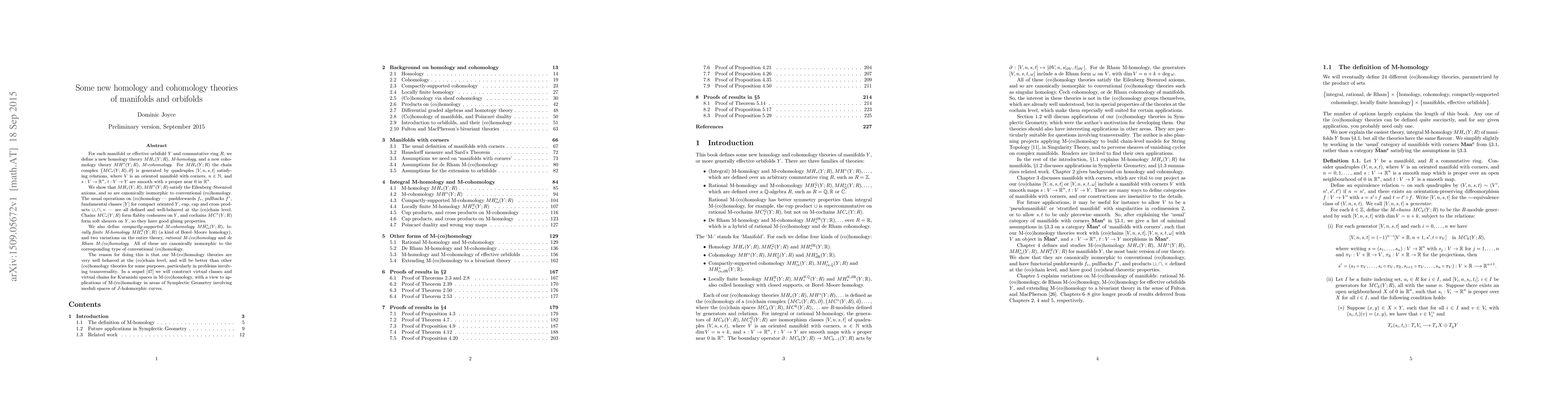 For each manifold or effective orbifold $Y$ and commutative ring $R$, we define a new homology theory $MH_*(Y;R)$, $M$-$homology$, and a new cohomology theory $MH^*(Y;R)$, $M$-$cohomology$. For $MH_*(Y;R)$ the chain complex $(MC_*(Y;R),\partial)$ is generated by quadruples $[V,n,s,t]$ satisfying relations, where $V$ is an oriented manifold with corners, $n\in\mathbb N$, and $s:V\to{\mathbb R}^n$, $t:V\to Y$ are smooth with $s$ proper near 0 in ${\mathbb R}^n$. We show that $MH_*(Y;R),MH^*(Y;R)$ satisfy the Eilenberg-Steenrod axioms, and so are canonically isomorphic to conventional (co)homology. The usual operations on (co)homology -- pushforwards $f_*$, pullbacks $f^*$, fundamental classes $[Y]$ for compact oriented $Y$, cup, cap and cross products $\cup,\cap,\times$ -- are all defined and well-behaved at the (co)chain level. Chains $MC_*(Y;R)$ form flabby cosheaves on $Y$, and cochains $MC^*(Y;R)$ form soft sheaves on $Y$, so they have good gluing properties. We also define $compactly$-$supported$ $M$-$cohomology$ $MH^*_{cs}(Y;R)$, $locally$ $finite$ $M$-$homology$ $MH_*^{lf}(Y;R)$ (a kind of Borel-Moore homology), and two variations on the entire theory, $rational$ $M$-($co$)$homology$ and $de$ $Rham$ $M$-($co$)$homology$. All of these are canonically isomorphic to the corresponding type of conventional (co)homology. The reason for doing this is that our M-(co)homology theories are very well behaved at the (co)chain level, and will be better than other (co)homology theories for some purposes, particularly in problems involving transversality. In a sequel we will construct virtual classes and virtual chains for Kuranishi spaces in M-(co)homology, with a view to applications of M-(co)homology in areas of Symplectic Geometry involving moduli spaces of $J$-holomorphic curves.