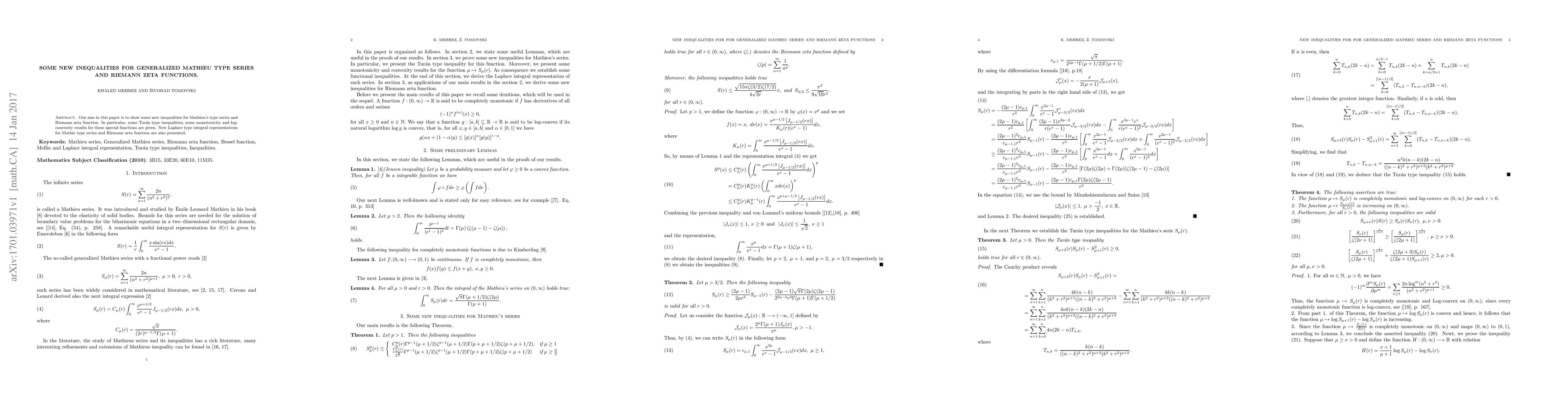 This paper presents new inequalities, including Turán type inequalities, monotonicity, and log-convexity results for Generalized Mathieu type series and Riemann zeta functions. Additionally, it introduces new Laplace type integral representations for these special functions.