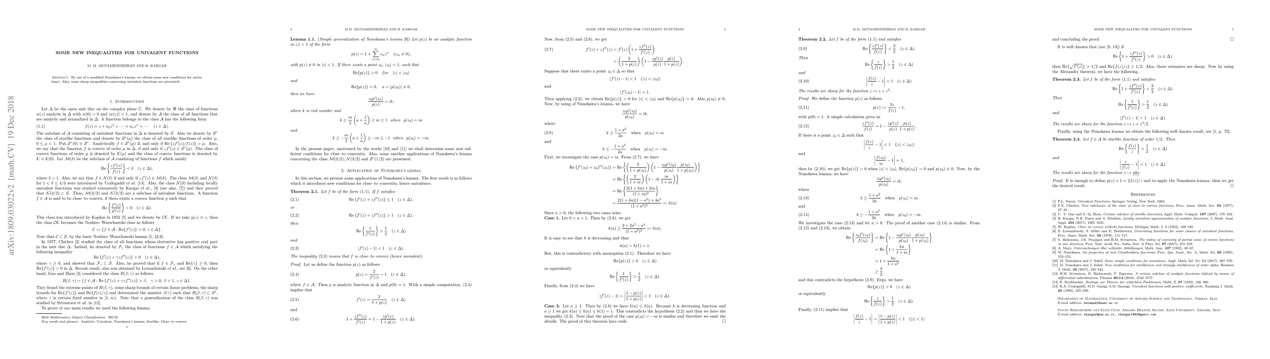 Researchers developed new conditions for univalence in functions and presented sharp inequalities using a modified Nunokawa's lemma, providing insights into the properties of univalent functions.