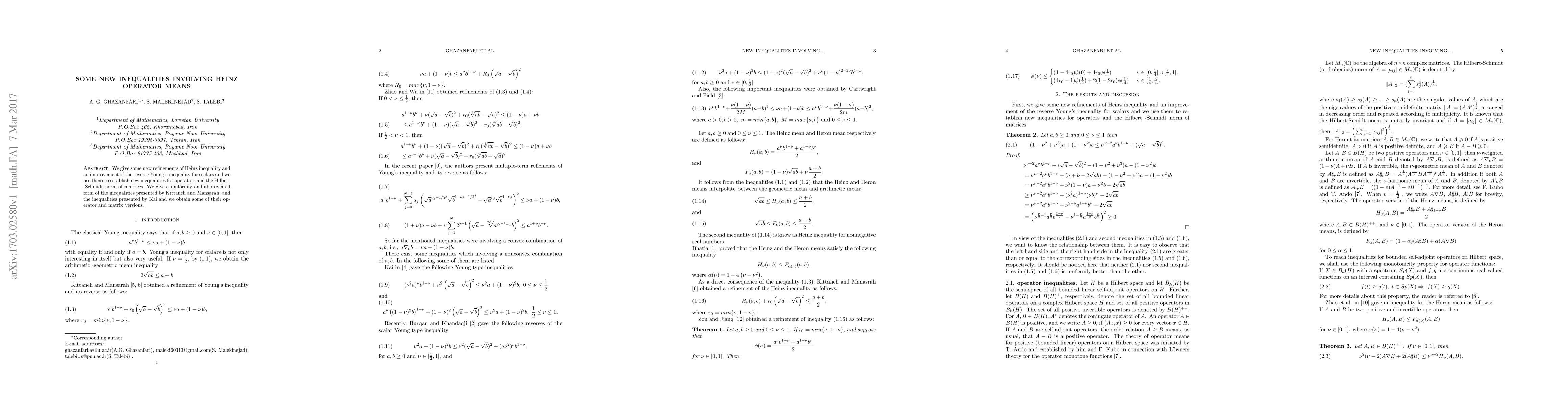 The paper introduces new refinements and improvements to Heinz and Young's inequalities, providing uniform and abbreviated forms for operator and matrix versions, enhancing the theory of operator means.