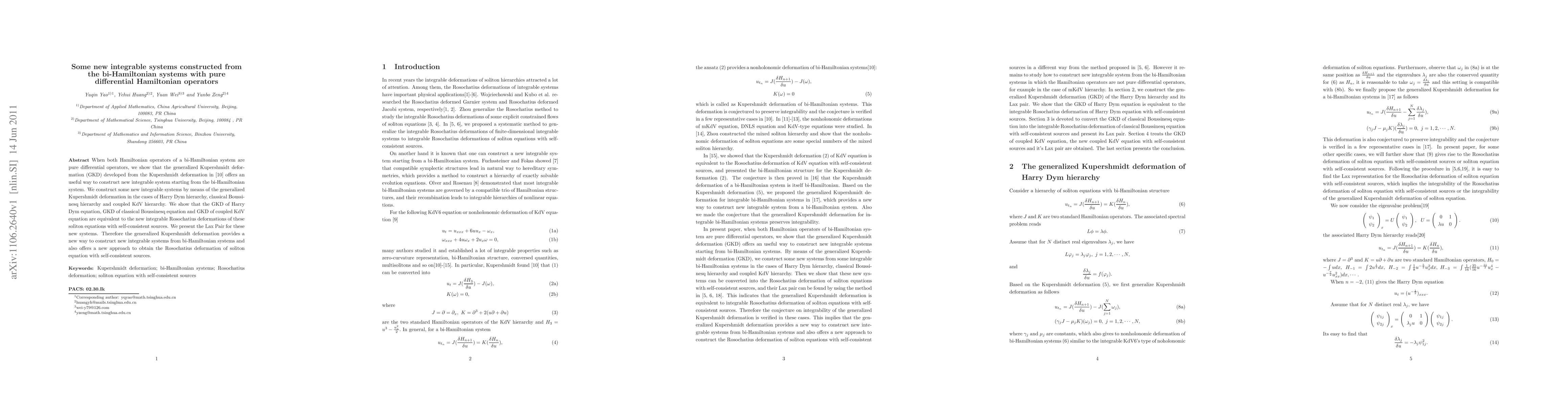 This paper demonstrates the construction of new integrable systems via generalized Kupershmidt deformation from bi-Hamiltonian systems with pure differential Hamiltonian operators. It presents the Lax Pair for these new systems, showing their equivalence to Rosochatius deformations of Harry Dym, classical Boussinesq, and coupled KdV hierarchies.