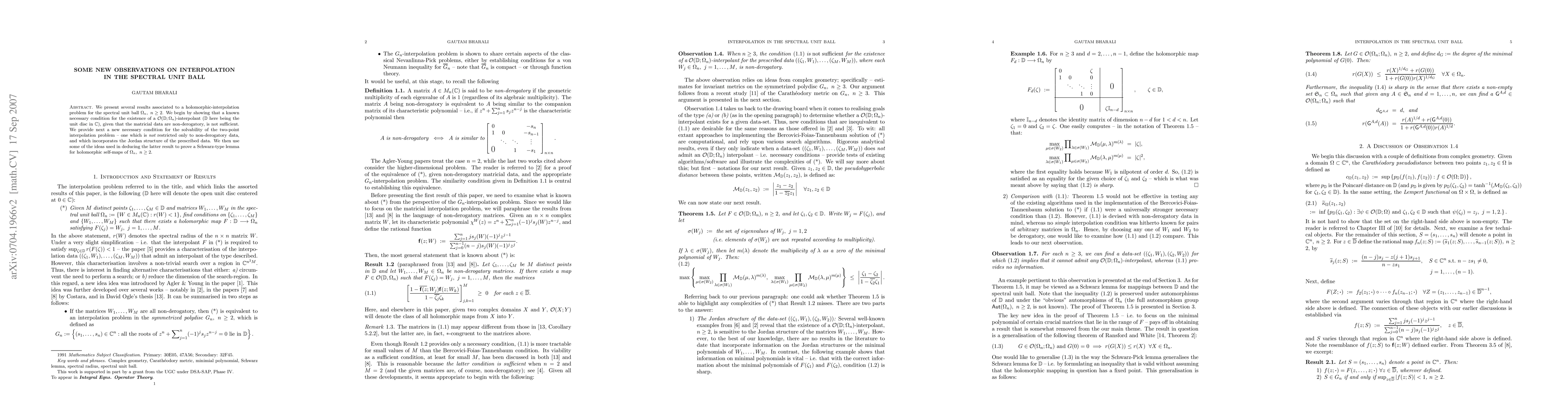 This paper investigates holomorphic interpolation in the spectral unit ball, demonstrating that a previously known necessary condition for interpolant existence is insufficient. It introduces a new necessary condition for the two-point interpolation problem, considering the Jordan structure of the data, and proves a Schwarz-type lemma for holomorphic self-maps of the spectral unit ball.