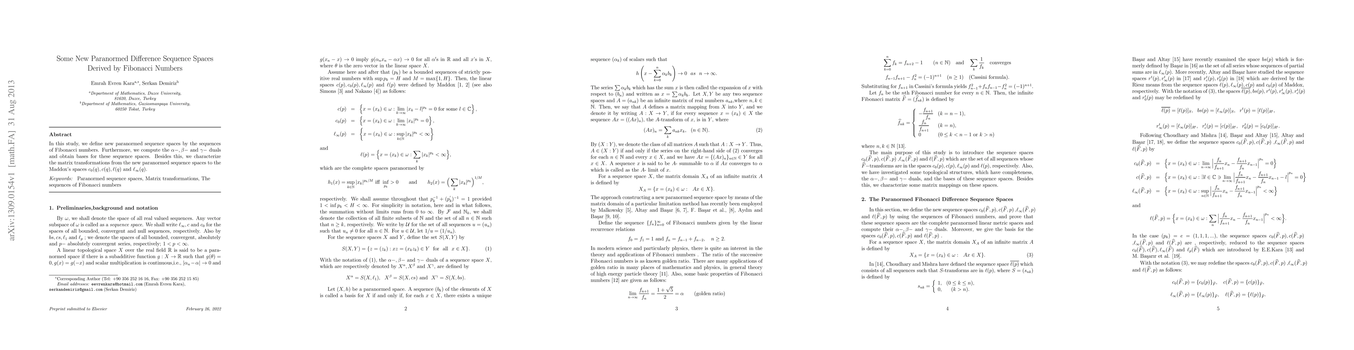 This paper introduces new paranormed sequence spaces derived by Fibonacci numbers, computes their $\alpha-, \beta-$ and $\gamma-$ duals, and finds their bases. It also characterizes matrix transformations from these spaces to Maddox's spaces $c_{0}(q), c(q), \ell(q)$, and $\ell_{\infty}(q)$.