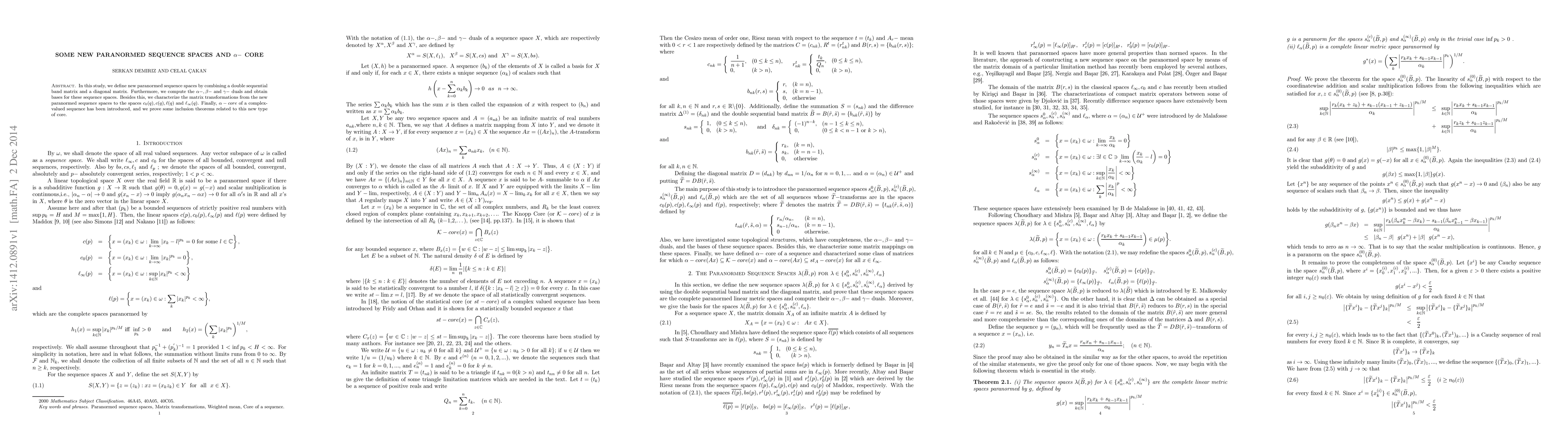 In this study, we define new paranormed sequence spaces by combining a double sequential band matrix and a diagonal matrix. Furthermore, we compute the $\alpha-,\beta-$ and $\gamma-$ duals and obtain bases for these sequence spaces. Besides this, we characterize the matrix transformations from the new paranormed sequence spaces to the spaces $c_{0}(q),c(q),\ell(q)$ and $\ell_{\infty}(q)$. Finally, $\alpha-core$ of a complex-valued sequence has been introduced, and we prove some inclusion theorems related to this new type of core.