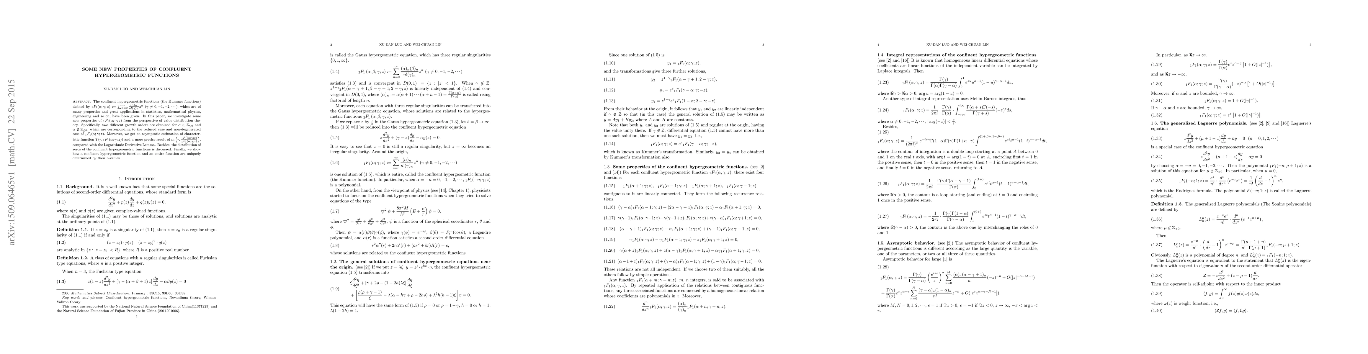 Researchers investigated new properties of confluent hypergeometric functions, including growth orders and asymptotic estimations, with implications for value distribution theory and the unique determination of entire functions.