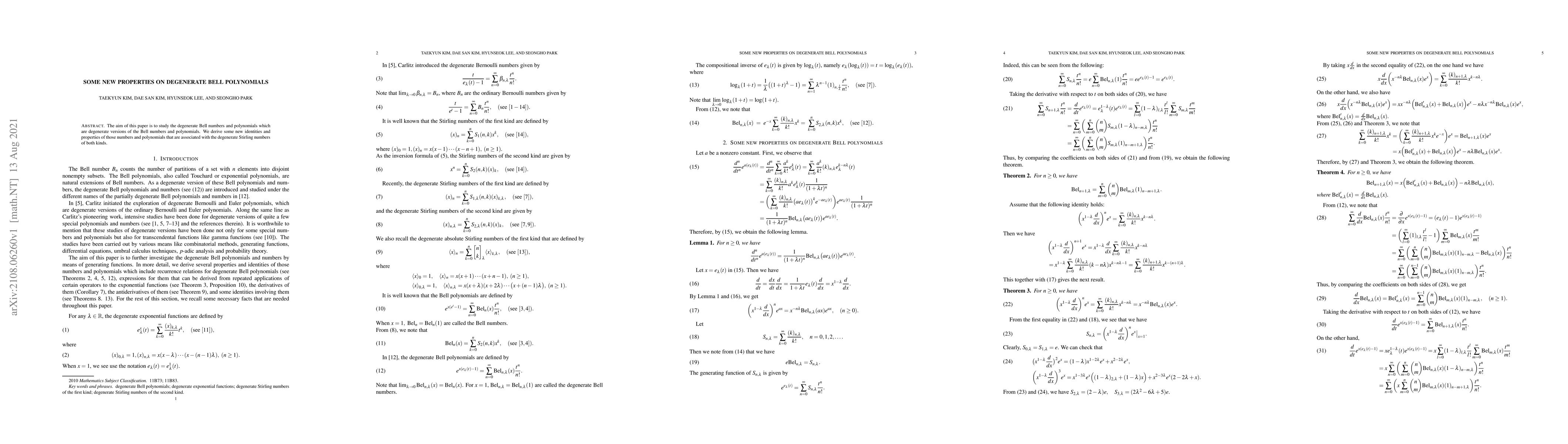 This paper investigates degenerate Bell numbers and polynomials, deriving new identities and properties related to these mathematical constructs, particularly in relation to degenerate Stirling numbers of both kinds.