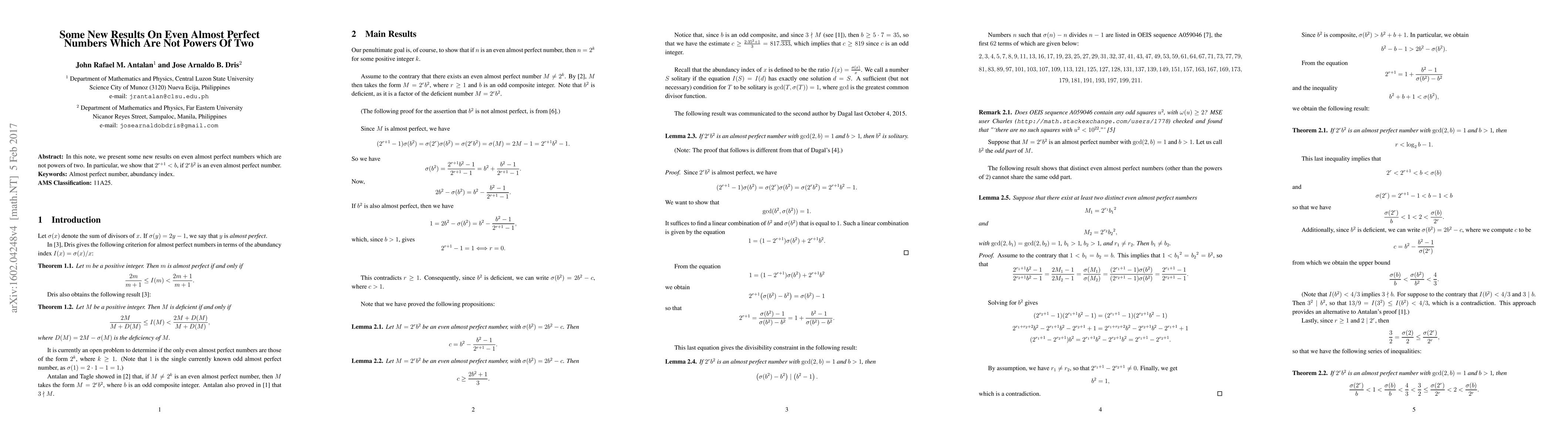 In this note, we present some new results on even almost perfect numbers which are not powers of two. In particular, we show that $2^{r+1} < b$, if ${2^r}{b^2}$ is an even almost perfect number.