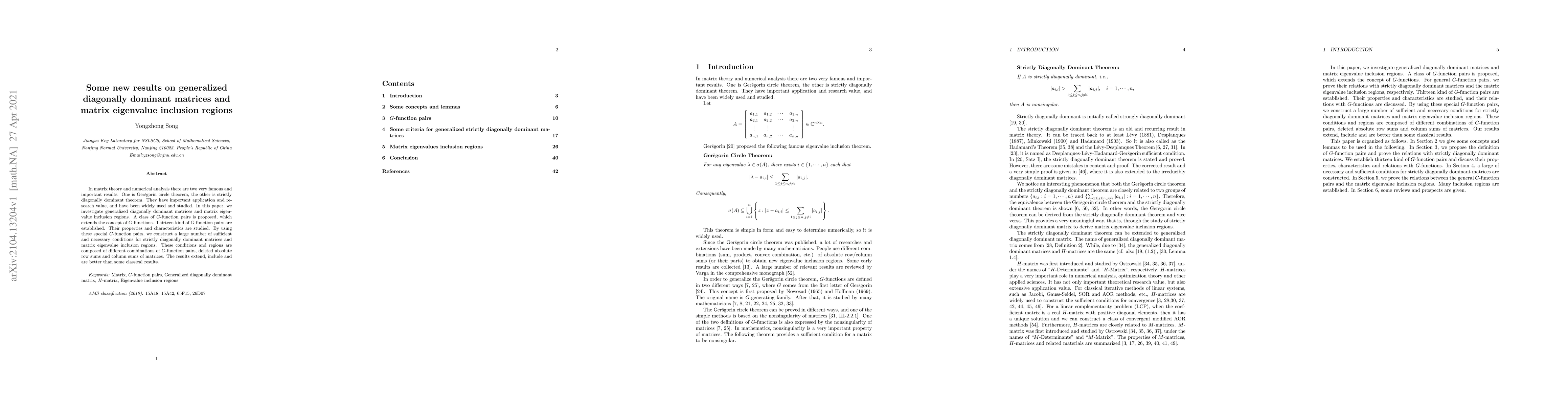 This paper extends the concept of generalized diagonally dominant matrices and explores matrix eigenvalue inclusion regions using new G-function pairs. It establishes thirteen types of G-function pairs and constructs numerous conditions for strictly diagonally dominant matrices, improving upon classical results.