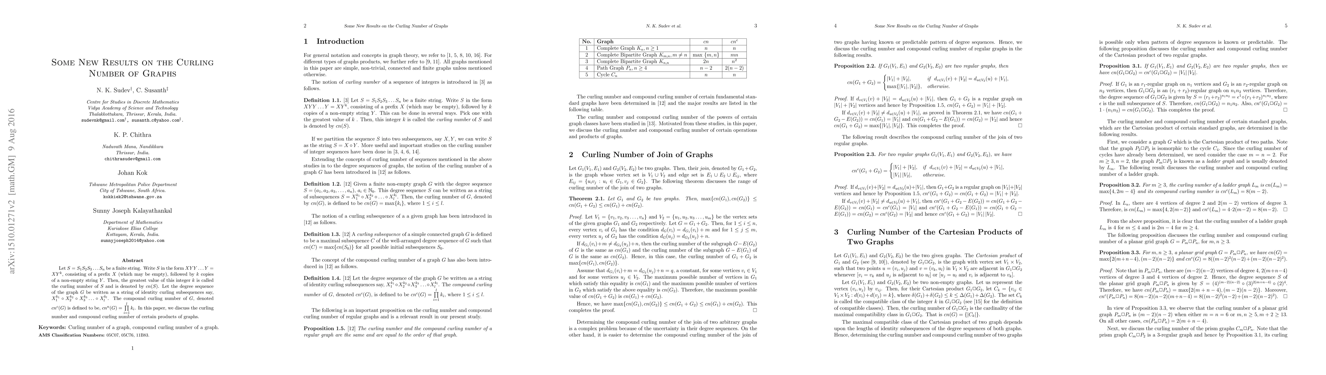 This paper introduces the concept of the curling number of a string and extends it to the compound curling number of graphs, defined via the degree sequences. It explores the compound curling number for various graph products.