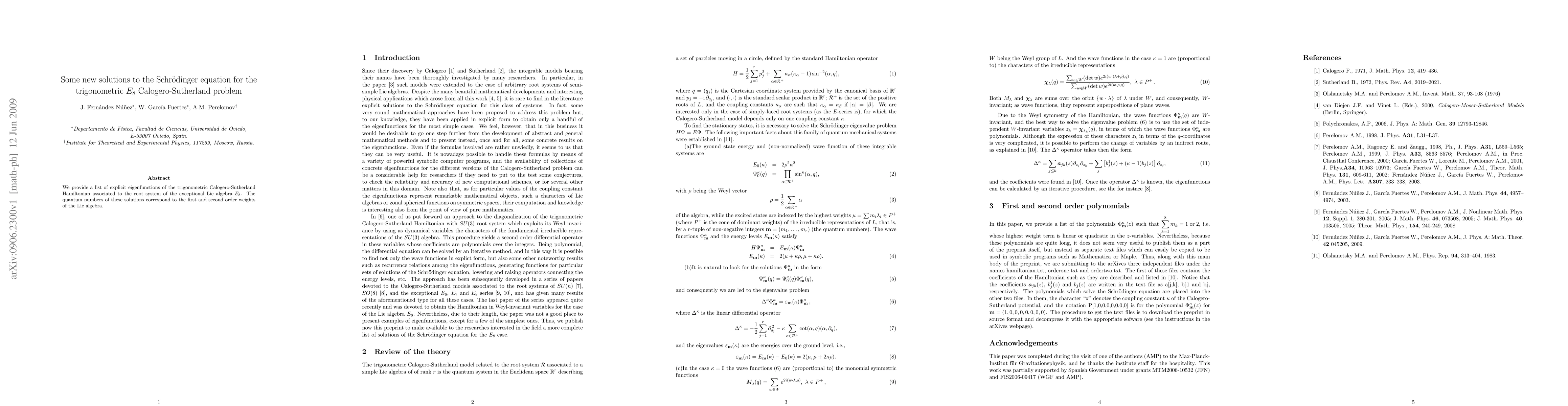 Researchers have found explicit eigenfunctions for the E8 Calogero-Sutherland problem, which relates to a complex mathematical equation in quantum mechanics. These solutions provide new insights into the behavior of particles at high energies.