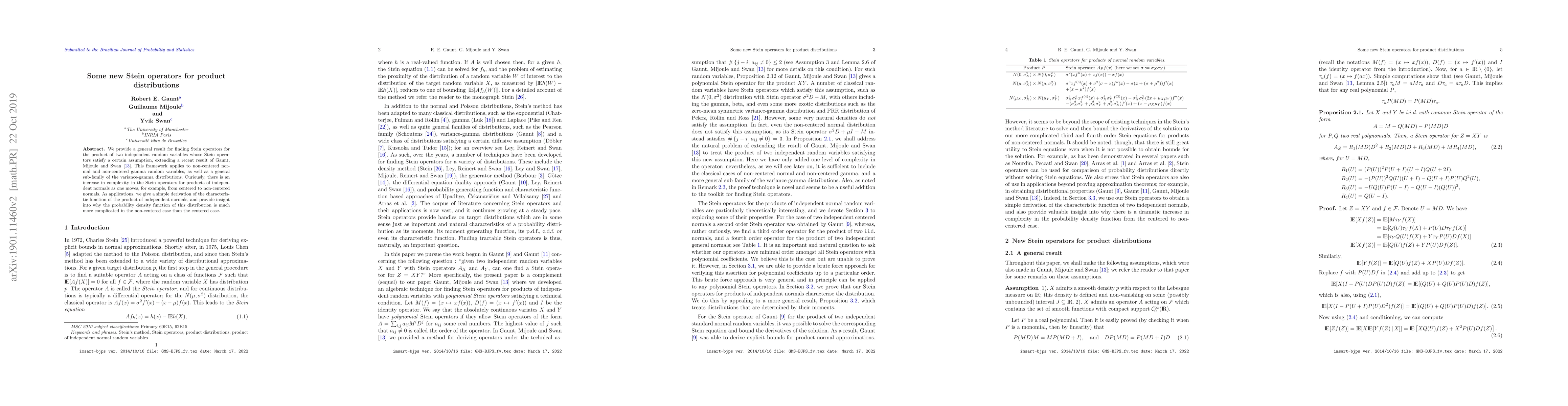 Researchers developed new Stein operators for product distributions of independent random variables, with implications for understanding non-centered normal and gamma distributions.