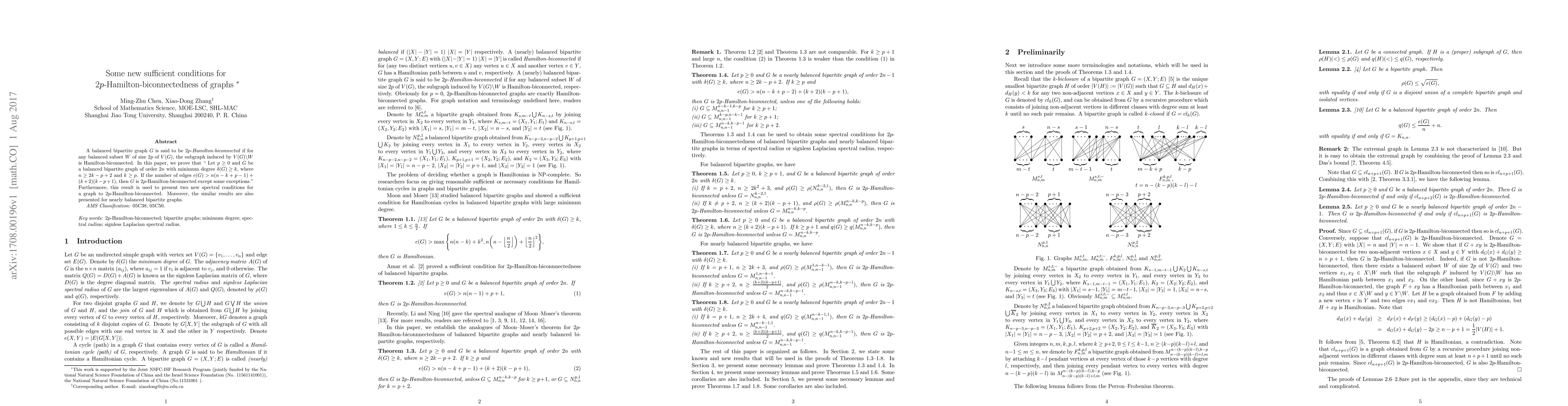 A balanced bipartite graph $G$ is said to be $2p$-Hamilton-biconnected if for any balanced subset $W$ of size $2p$ of $V(G)$, the subgraph induced by $V(G)\backslash W$ is Hamilton-biconnected. In this paper, we prove that "Let $p\geq0$ and $G$ be a balanced bipartite graph of order $2n$ with minimum degree $\delta(G)\geq k$, where $n\geq 2k-p+2$ and $k\geq p$. If the number of edges $ e(G)>n(n-k+p-1)+(k+2)(k-p+1), $ then $G$ is $2p$-Hamilton-biconnected except some exceptions." Furthermore, this result is used to present two new spectral conditions for a graph to $2p$-Hamilton-biconnected. Moreover, the similar results are also presented for nearly balanced bipartite graphs.