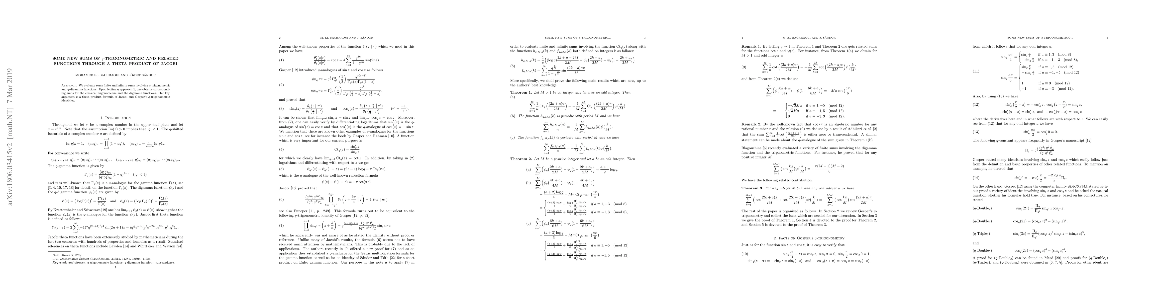 We evaluate some finite and infinite sums involving $q$-trigonometric and $q$-digamma functions. Upon letting $q$ approach $1$, one obtains corresponding sums for the classical trigonometric and the digamma functions. Our key argument is a theta product formula of Jacobi and Gosper's $q$-trigonometric identities.