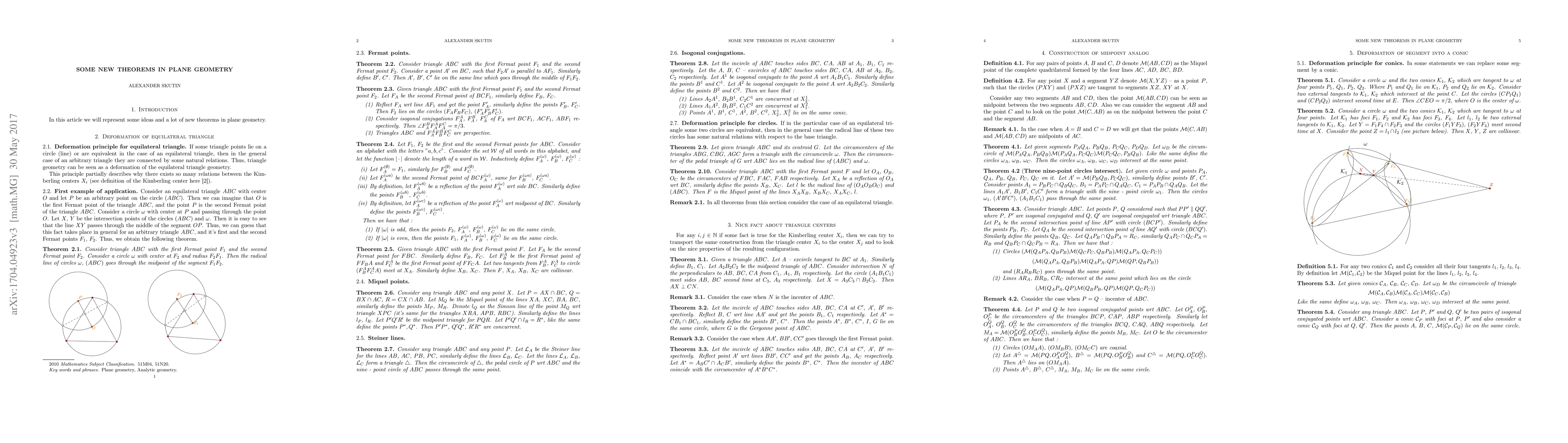 The paper presents new theorems in Euclidean plane geometry, derived through various geometric constructions and properties.