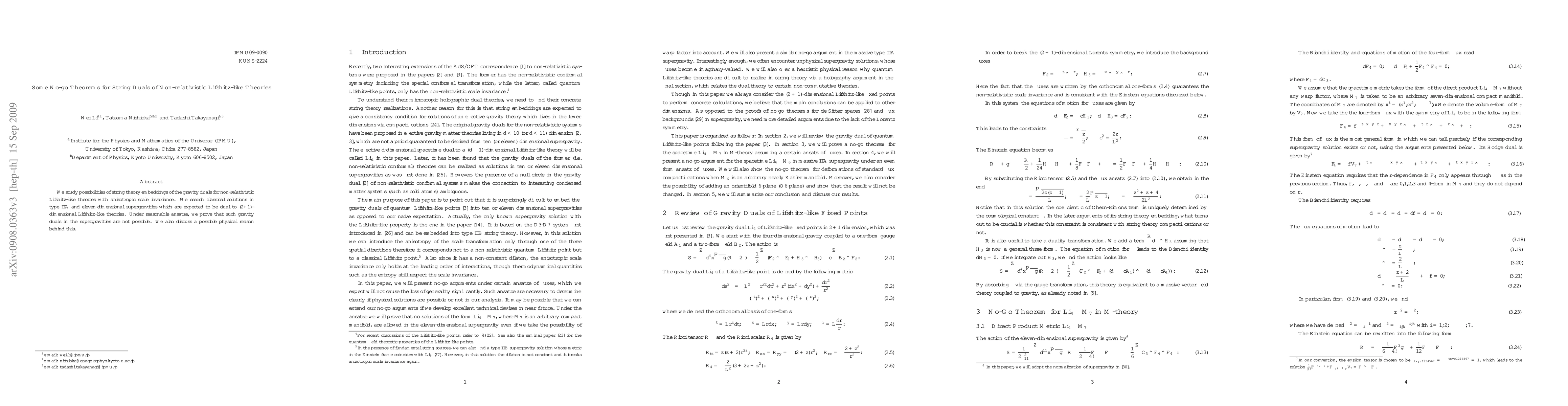 This paper proves that string theory embeddings of gravity duals for non-relativistic Lifshitz-like theories with anisotropic scale invariance are not possible in type IIA and eleven-dimensional supergravities, under reasonable assumptions, and discusses a potential physical reason for this impossibility.