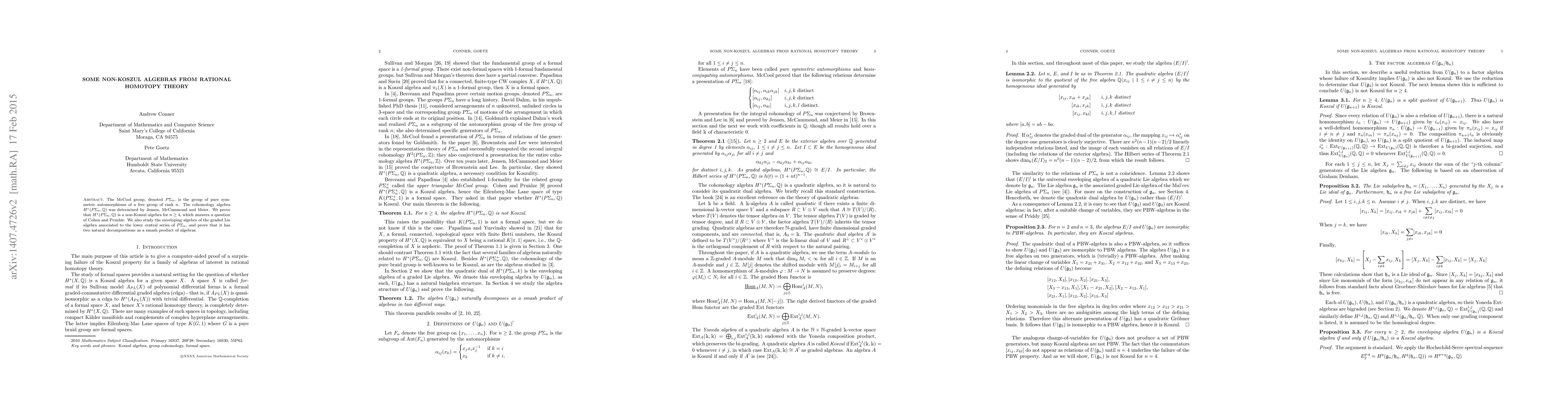 The McCool group, denoted $P\Sigma_n$, is the group of pure symmetric automorphisms of a free group of rank $n$. The cohomology algebra $H^*(P\Sigma_n, \mathbb{Q})$ was determined by Jensen, McCammond and Meier. We prove that $H^*(P\Sigma_n, \mathbb{Q})$ is a non-Koszul algebra for $n \geq 4$, which answers a question of Cohen and Pruidze. We also study the enveloping algebra of the graded Lie algebra associated to the lower central series of $P\Sigma_n$, and prove that it has two natural decompositions as a smash product of algebras.