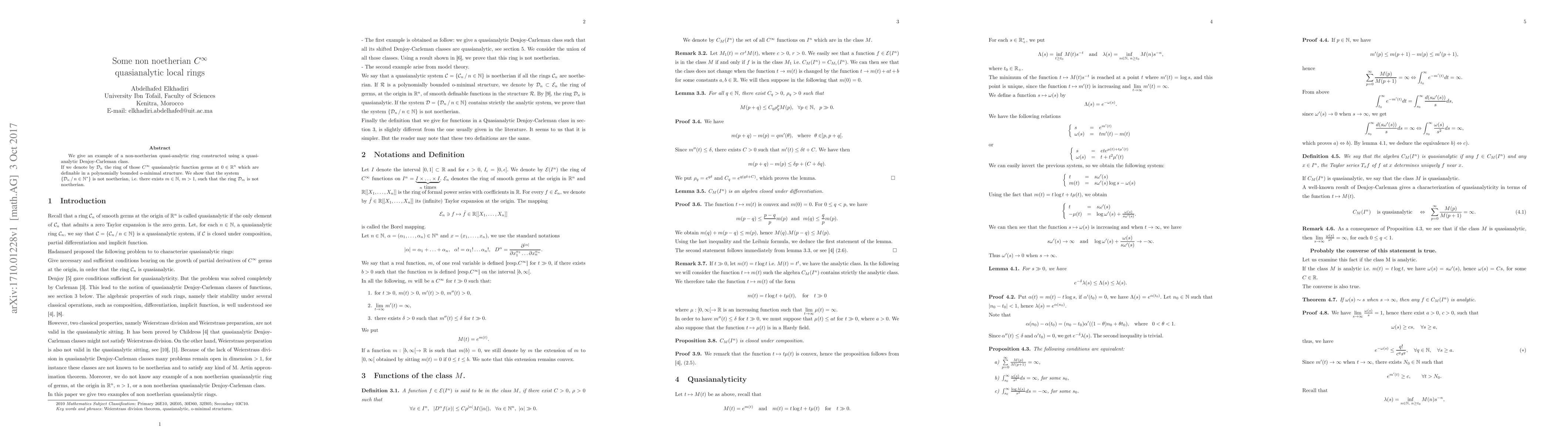 This paper constructs a non-Noetherian quasi-analytic ring using a Denjoy-Carleman class, demonstrating that the system of function germs defined in a polynomially bounded o-minimal structure is not Noetherian for certain dimensions.