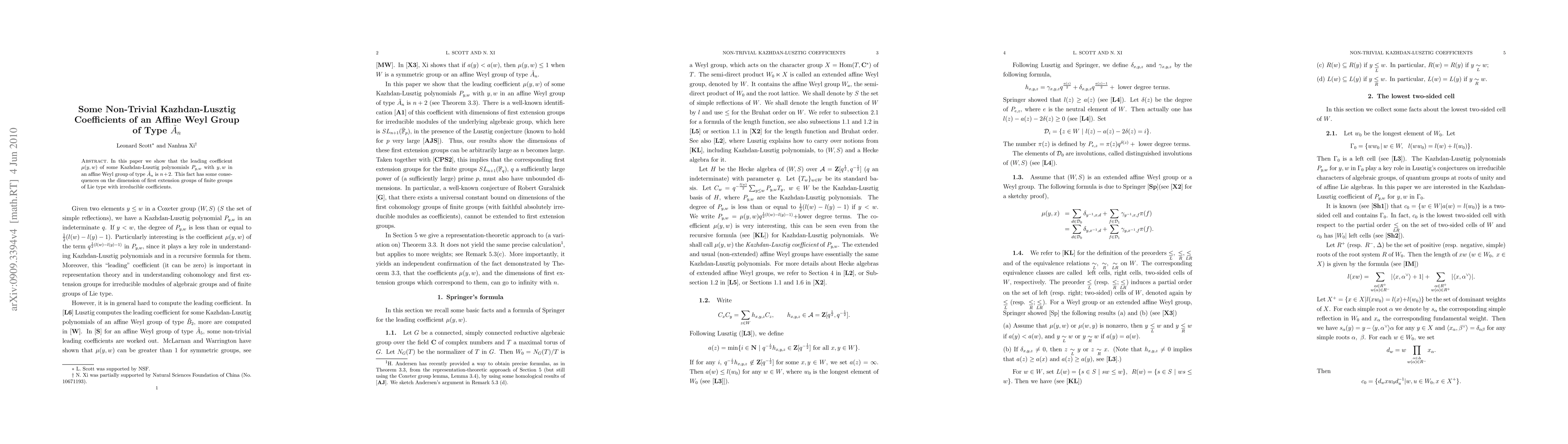 Researchers found that a specific coefficient in Kazhdan-Lusztig polynomials is always $n+2$ for an affine Weyl group of type $ ilde A_n$, with implications for the dimension of certain groups.