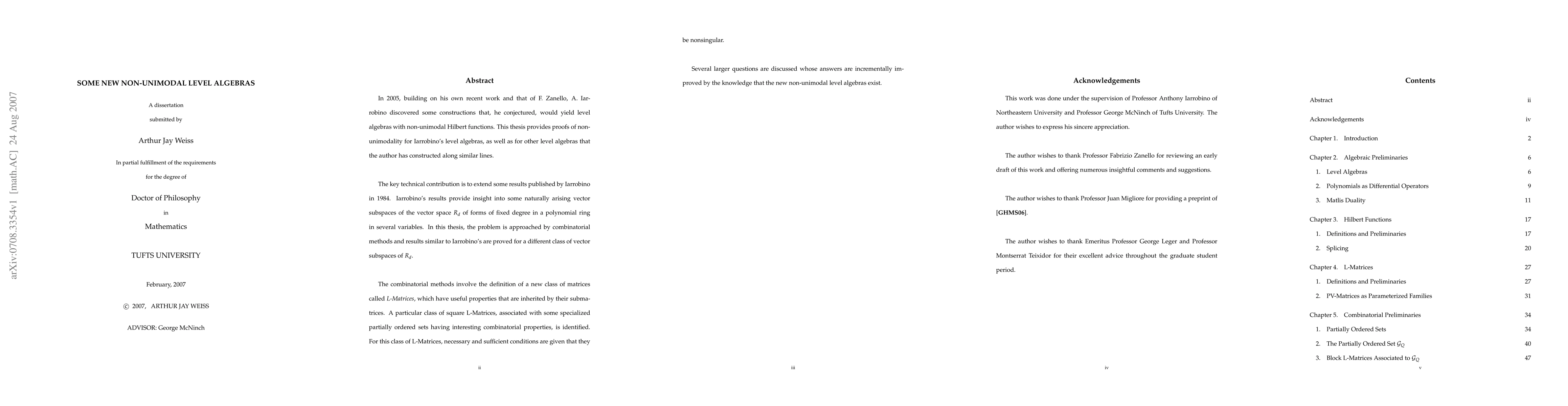 In 2005, building on his own recent work and that of F. Zanello, A. Iarrobino discovered some constructions that, he conjectured, would yield level algebras with non-unimodal Hilbert functions. This thesis provides proofs of non-unimodality for Iarrobino's level algebras, as well as for other level algebras that the author has constructed along similar lines. The key technical contribution is to extend some results published by Iarrobino in 1984. Iarrobino's results provide insight into some naturally arising vector subspaces of the vector space R_d of forms of fixed degree in a polynomial ring in several variables. In this thesis, the problem is approached by combinatorial methods and results similar to Iarrobino's are proved for a different class of vector subspaces of R_d. The combinatorial methods involve the definition of a new class of matrices called L-Matrices, which have useful properties that are inherited by their submatrices. A particular class of square L-Matrices, associated with some specialized partially ordered sets having interesting combinatorial properties, is identified. For this class of L-Matrices, necessary and sufficient conditions are given that they be nonsingular. Several larger questions are discussed whose answers are incrementally improved by the knowledge that the new non-unimodal level algebras exist.