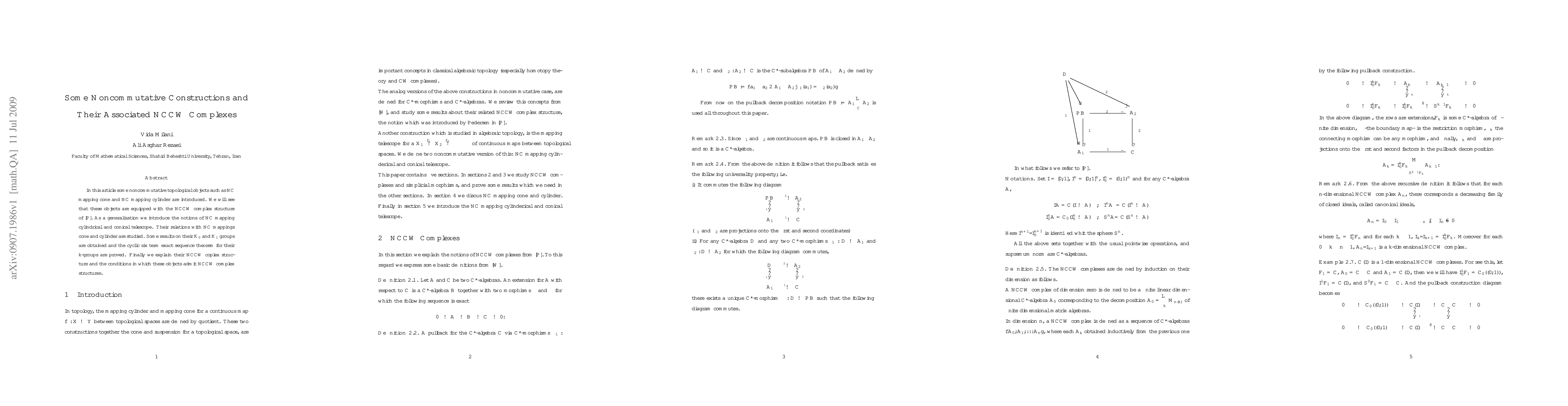In this article some noncommutative topological objects such as NC mapping cone and NC mapping cylinder are introduced. We will see that these objects are equipped with the NCCW complex structure of [PEDERSEN]. As a generalization we introduce the notions of NC mapping cylindrical and conical telescope. Their relations with NC mappings cone and cylinder are studied. Some results on their K0 and K1 groups are obtained and the cyclic six term exact sequence theorem for their k-groups are proved. Finally we explain their NCCW coplex structure and the conditions in which these objects admit NCCW complex structures.