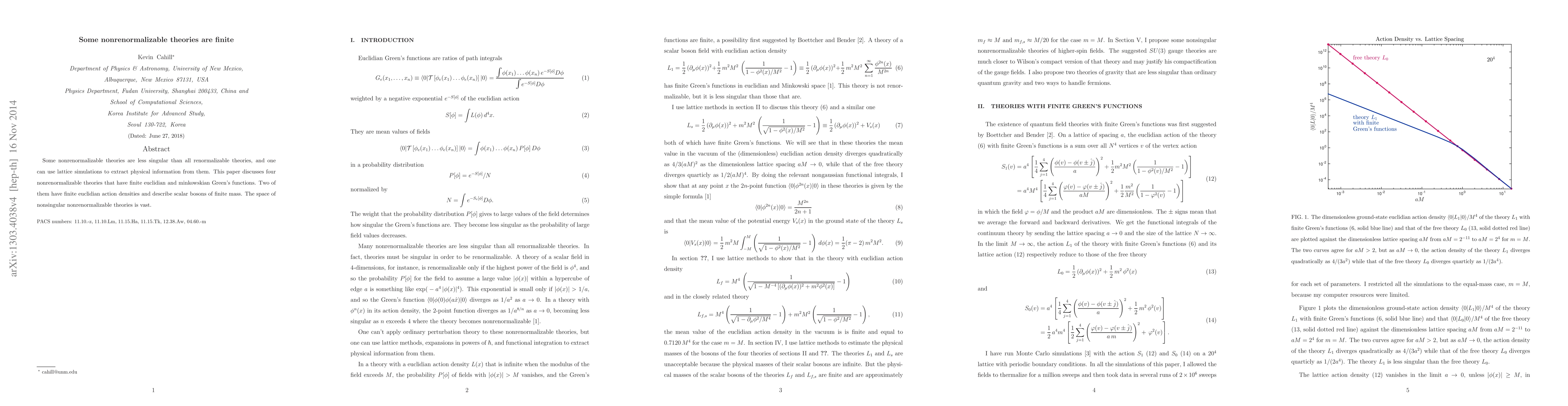Some nonrenormalizable theories are less singular than all renormalizable theories, and one can use lattice simulations to extract physical information from them. This paper discusses four nonrenormalizable theories that have finite euclidian and minkowskian Green's functions. Two of them have finite euclidian action densities and describe scalar bosons of finite mass. The space of nonsingular nonrenormalizable theories is vast.