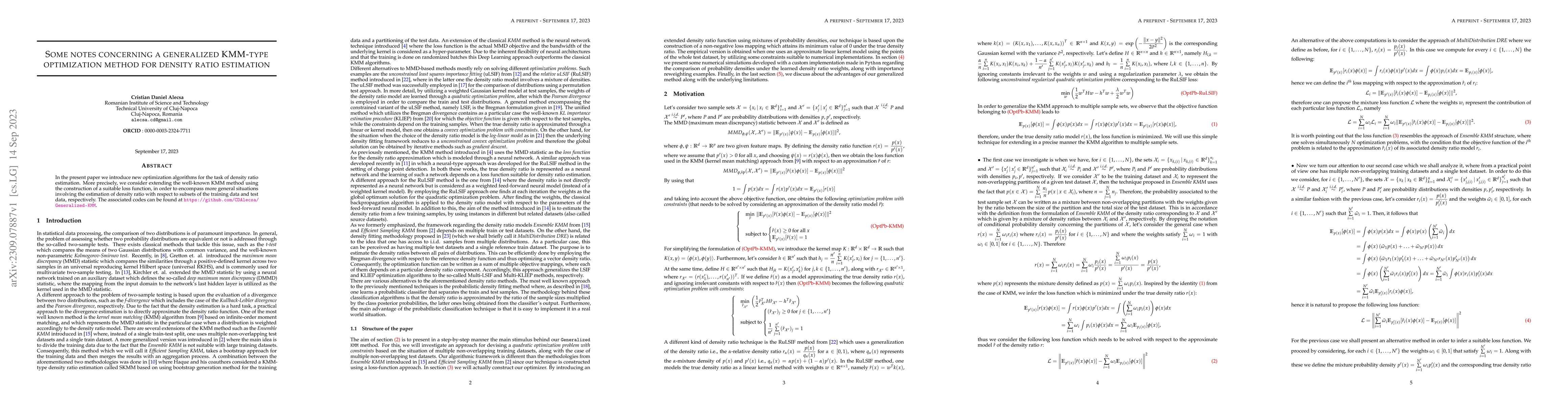 This paper introduces new optimization algorithms for density ratio estimation by extending the KMM method with a tailored loss function. The approach allows for the estimation of density ratios concerning subsets of training and test data, with associated codes available on GitHub.
