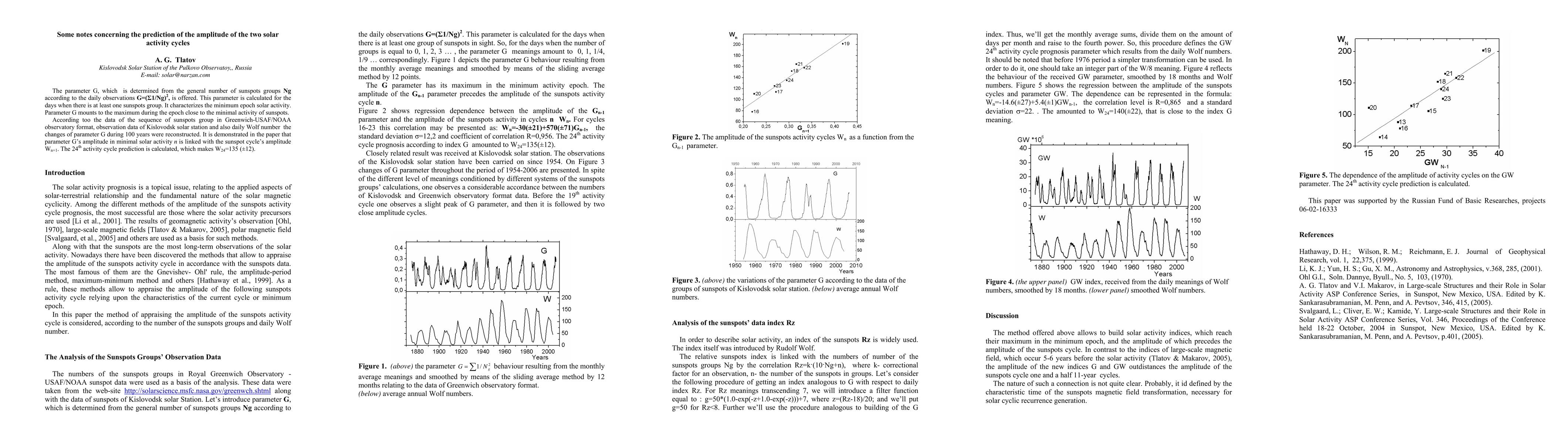 The parameter G, which is determined from the general number of sunspots groups Ng according to the daily observations G=Sum(1/Ng)^2, is offered. This parameter is calculated for the days when there is at least one sunspots group. It characterizes the minimum epoch solar activity. Parameter G mounts to the maximum during the epoch close to the minimal activity of sunspots. According too the data of the sequence of sunspots group in Greenwich-USAF/NOAA observatory format, observation data of Kislovodsk solar station and also daily Wolf number the changes of parameter G during 100 years were reconstructed. It is demonstrated in the paper that parameter G's amplitude in minimal solar activity n is linked with the sunspot cycle's amplitude Wn+1. The 24th activity cycle prediction is calculated, which makes W24=135(+/-12).