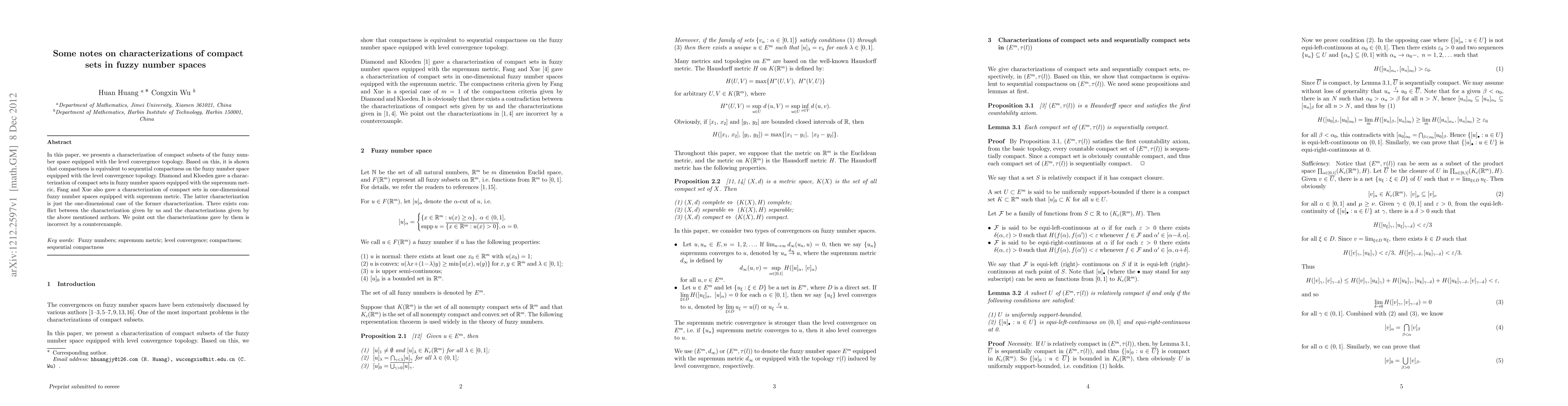 This paper characterizes compact subsets in fuzzy number spaces using the level convergence topology, proving that compactness is equivalent to sequential compactness under this topology. It also disputes previous characterizations by Diamond, Kloeden, Fang, and Xue, demonstrating their inaccuracy with a counterexample.