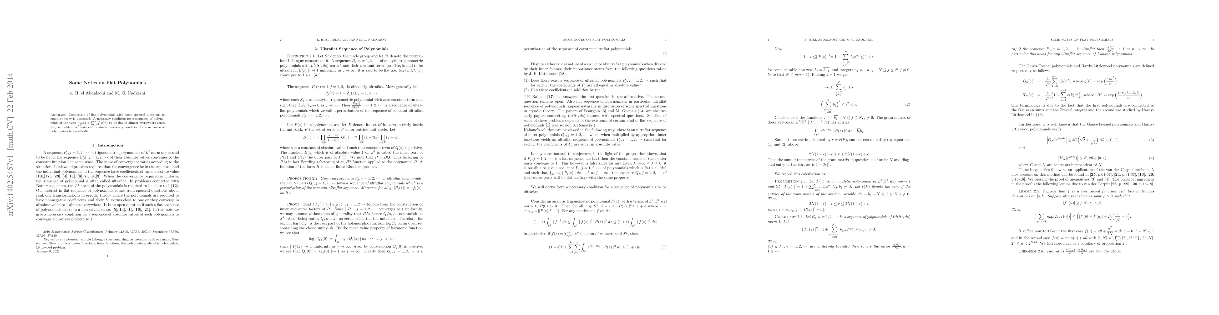 This paper explores the relationship between flat polynomials and spectral questions in ergodic theory, providing a necessary condition for a specific polynomial sequence to be flat almost everywhere, contrasting it with the condition for ultraflatness.
