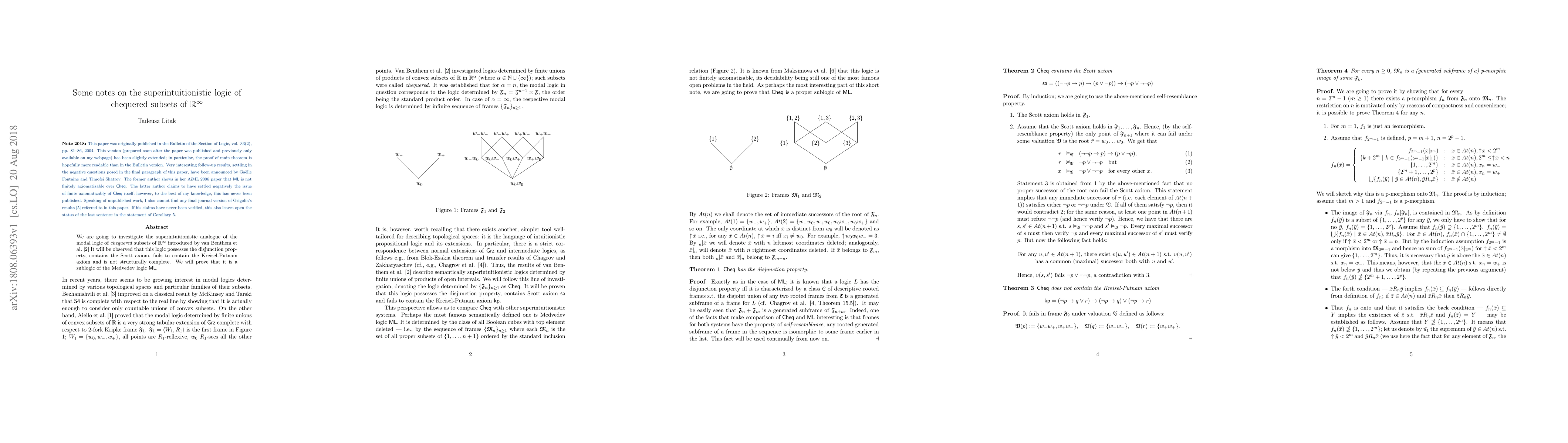 This paper investigates the superintuitionistic logic of chequered subsets of $/mathbb{R}^ty$, finding it possesses the disjunction property but fails to contain the Kreisel-Putnam axiom.