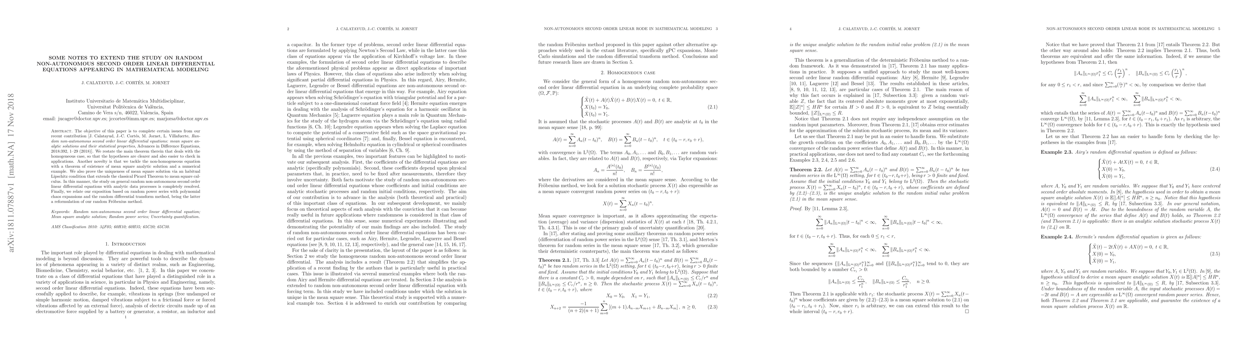 The objective of this paper is to complete certain issues from our recent contribution [J. Calatayud, J.-C. Cort\'es, M. Jornet, L. Villafuerte, Random non-autonomous second order linear differential equations: mean square analytic solutions and their statistical properties, Advances in Difference Equations, 2018:392, 1--29 (2018)]. We restate the main theorem therein that deals with the homogeneous case, so that the hypotheses are clearer and also easier to check in applications. Another novelty is that we tackle the non-homogeneous equation with a theorem of existence of mean square analytic solution and a numerical example. We also prove the uniqueness of mean square solution via an habitual Lipschitz condition that extends the classical Picard Theorem to mean square calculus. In this manner, the study on general random non-autonomous second order linear differential equations with analytic data processes is completely resolved. Finally, we relate our exposition based on random power series with polynomial chaos expansions and the random differential transform method, being the latter a reformulation of our random Fr\"obenius method.