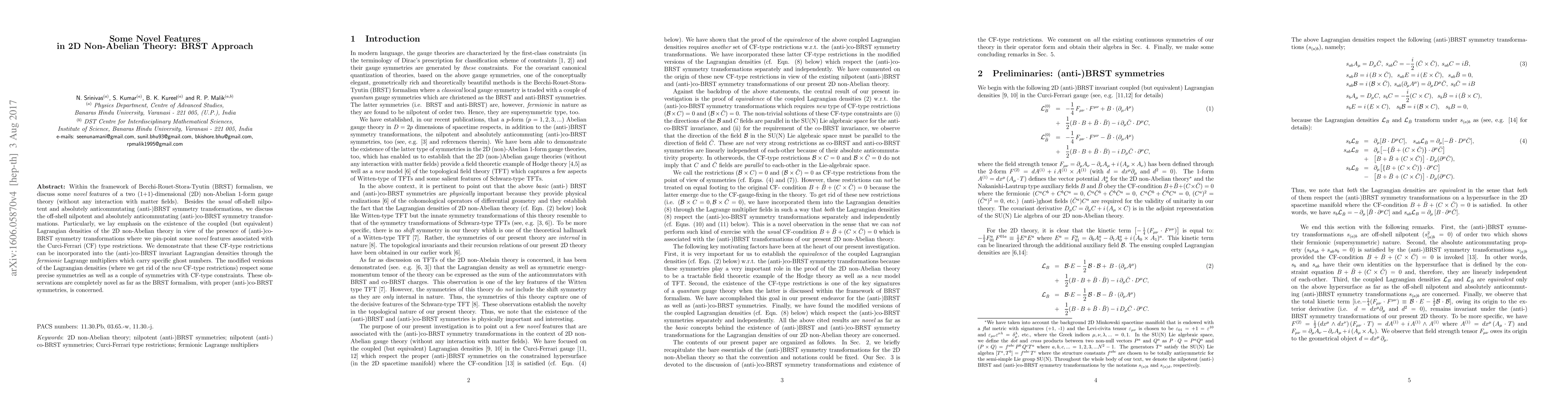 This paper explores novel features of a 2D non-Abelian 1-form gauge theory using the BRST formalism, highlighting the existence of coupled Lagrangian densities with off-shell nilpotent (anti-)co-BRST symmetries. It introduces Curci-Ferrari type restrictions incorporated via fermionic Lagrange multipliers, revealing new insights into the symmetries of the theory.