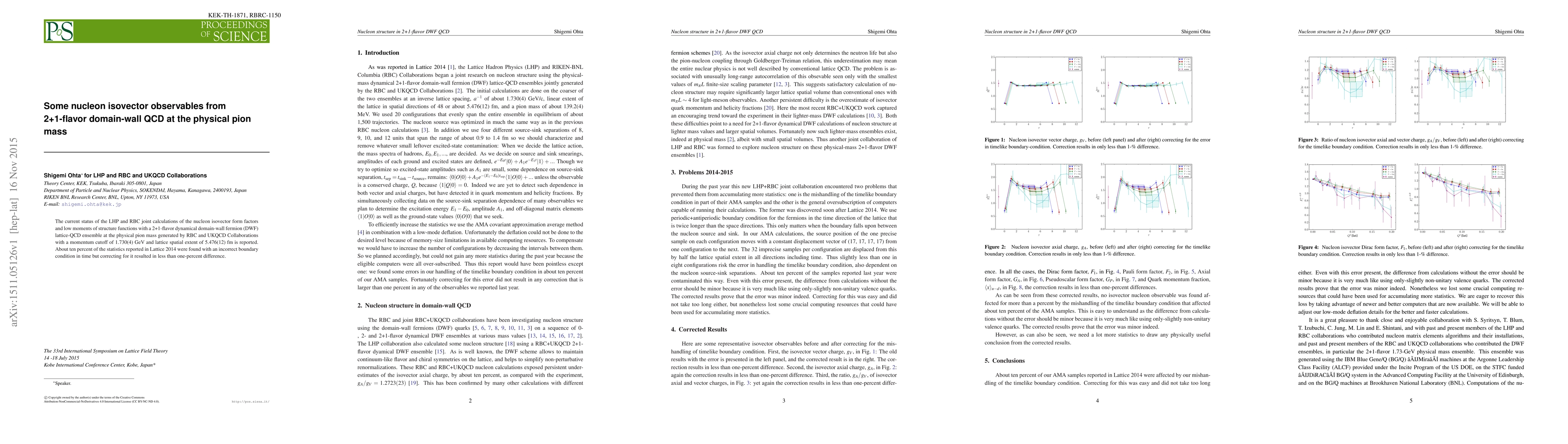 This paper reports on the latest results from the LHP and RBC collaborations on nucleon isovector observables using 2+1-flavor domain-wall QCD at the physical pion mass. Despite an initial ten percent of the data having incorrect boundary conditions, corrections resulted in minimal impact on the findings.