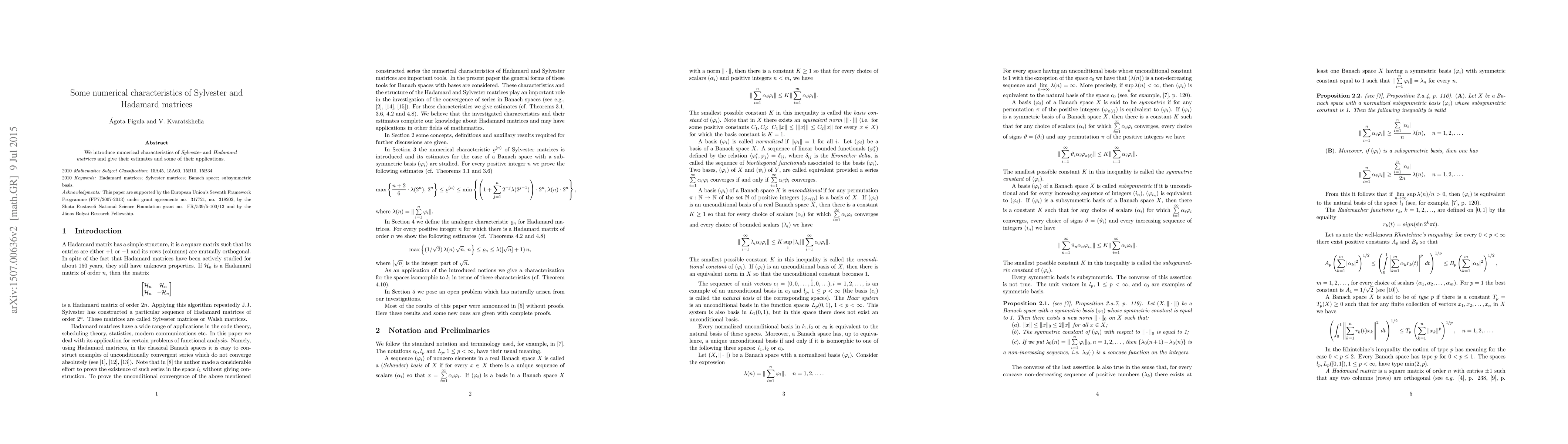 Summary: This paper explores numerical characteristics of Sylvester and Hadamard matrices, providing estimates and discussing their applications in various fields. The study highlights the unique properties and potential uses of these matrices.