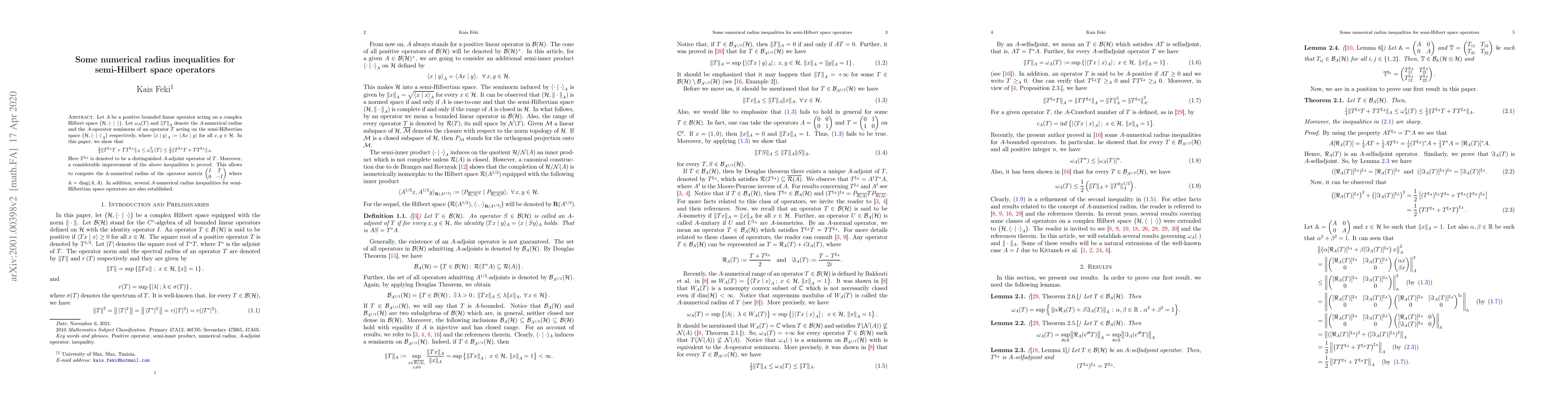 Let $A$ be a positive bounded linear operator acting on a complex Hilbert space $\big(\mathcal{H}, \langle \cdot\mid \cdot\rangle \big)$. Let $\omega_A(T)$ and ${\|T\|}_A$ denote the $A$-numerical radius and the $A$-operator seminorm of an operator $T$ acting on the semi-Hilbertian space $\big(\mathcal{H}, {\langle \cdot\mid \cdot\rangle}_A\big)$ respectively, where ${\langle x\mid y\rangle}_A := \langle Ax\mid y\rangle$ for all $x, y\in\mathcal{H}$. In this paper, we show that \begin{equation*}\label{m1} \tfrac{1}{4}\|T^{\sharp_A} T+TT^{\sharp_A}\|_A\le \omega_A^2\left(T\right) \le \tfrac{1}{2}\|T^{\sharp_A} T+TT^{\sharp_A}\|_A. \end{equation*} Here $T^{\sharp_A}$ is denoted to be a distinguished $A$-adjoint operator of $T$. Moreover, a considerable improvement of the above inequalities is proved. This allows to compute the $\mathbb{A}$-numerical radius of the operator matrix $\begin{pmatrix} I&T \\ 0&-I \end{pmatrix}$ where $\mathbb{A}= \text{diag}(A,A)$. In addition, several $A$-numerical radius inequalities for semi-Hilbertian space operators are also established.