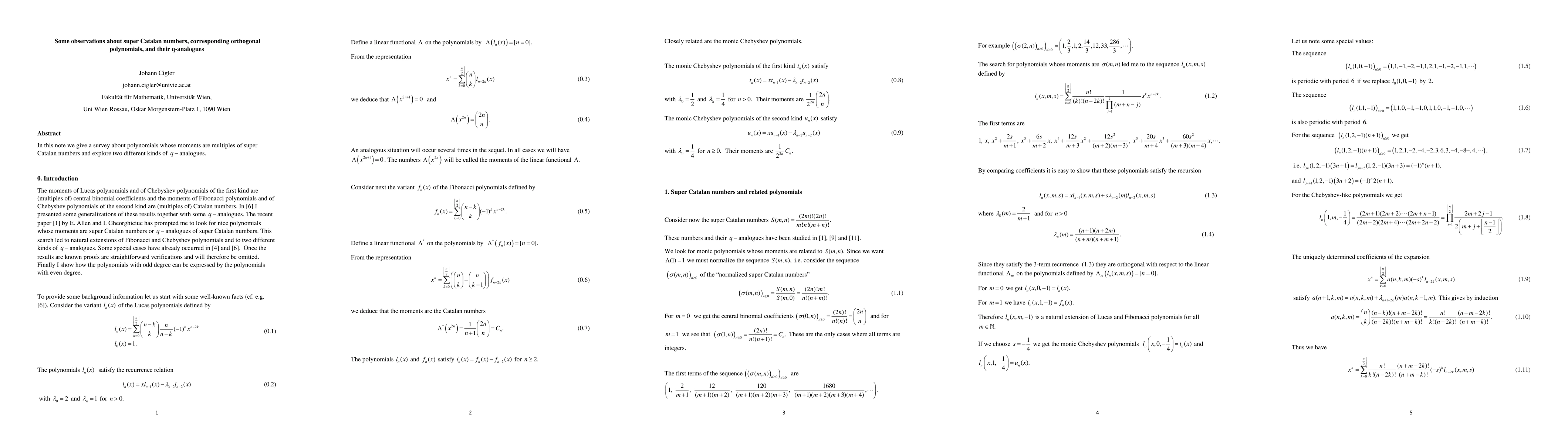 Summary: This paper surveys orthogonal polynomials whose moments are multiples of super Catalan numbers and explores two distinct q-analogues of these polynomials, providing insights into their properties and relationships.
