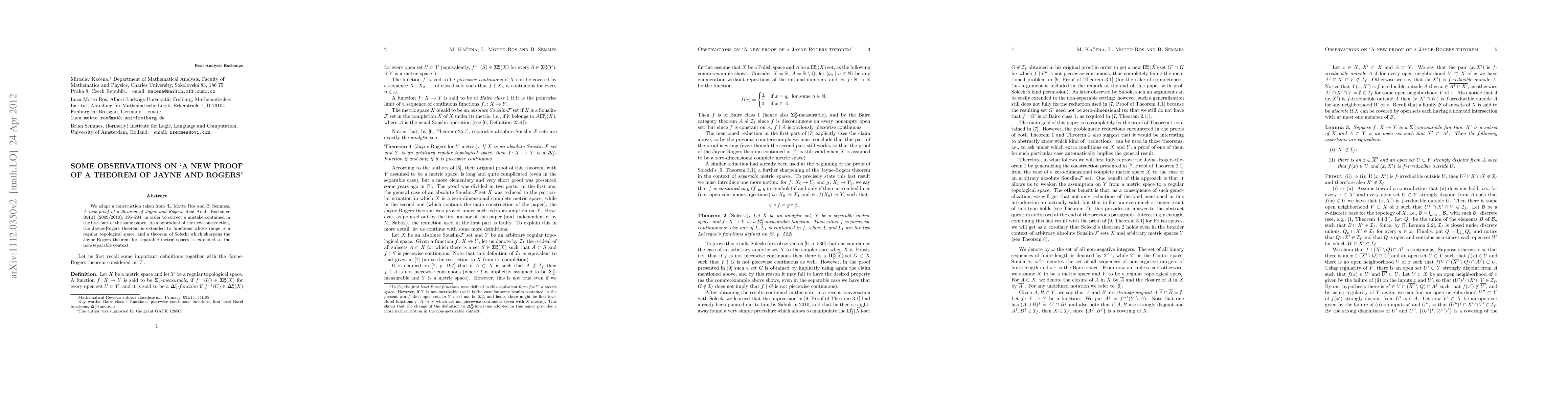 We adapt a construction taken from `L. Motto Ros and B. Semmes, A new proof of a theorem of Jayne and Rogers, Real Anal. Exchange 35(1) (2009/2010), 195-204' in order to correct a mistake contained in the first part of the same paper. As a byproduct of the new construction, the Jayne-Rogers theorem is extended to functions whose range is a regular topological space, and a theorem of Solecki which sharpens the Jayne-Rogers theorem for separable metric spaces is extended to the non-separable context.