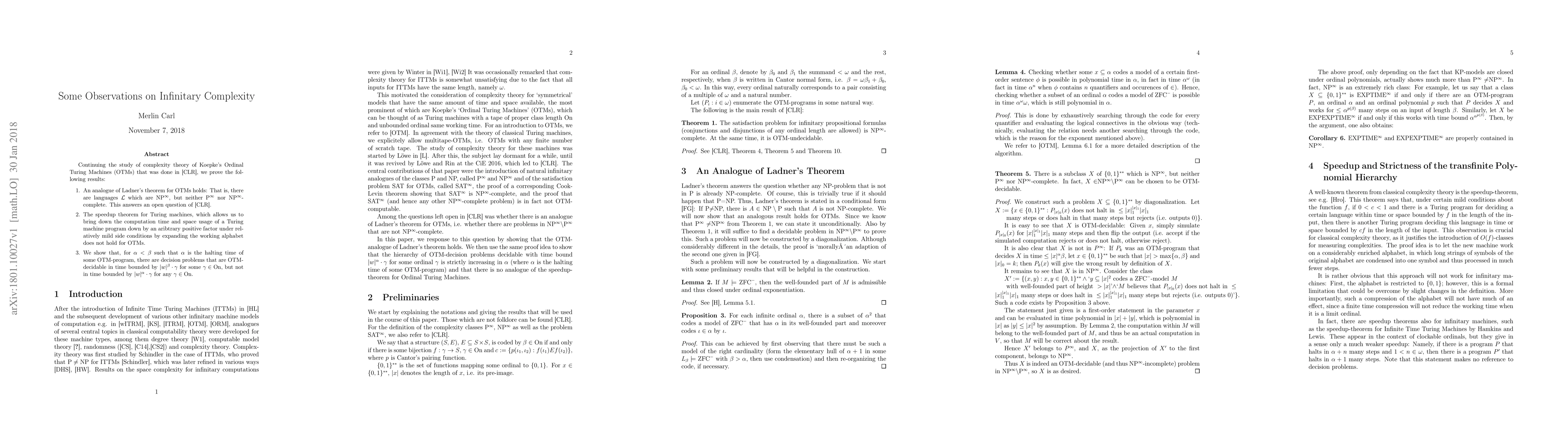 This research paper explores the complexity theory of Koepke's Ordinal Turing Machines (OTMs), proving three key results including a Ladner-like theorem for OTMs and demonstrating that speedup theorems do not hold for these machines.