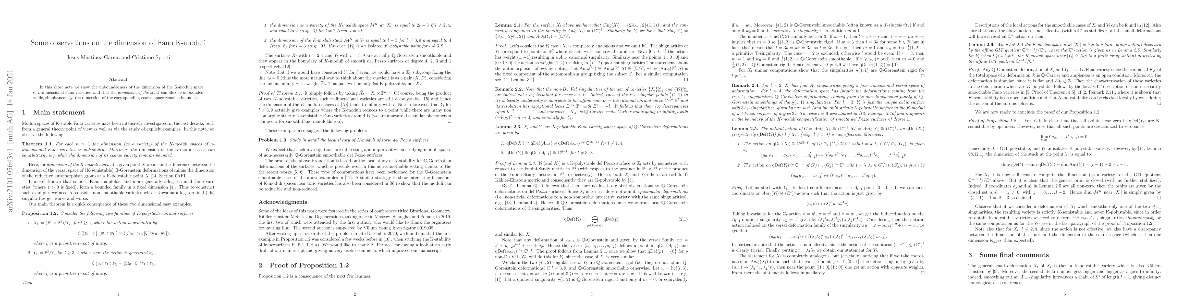 In this short note we show the unboundedness of the dimension of the K-moduli space of $n$-dimensional Fano varieties, and that the dimension of the stack can also be unbounded while, simultaneously, the dimension of the corresponding coarse space remains bounded.