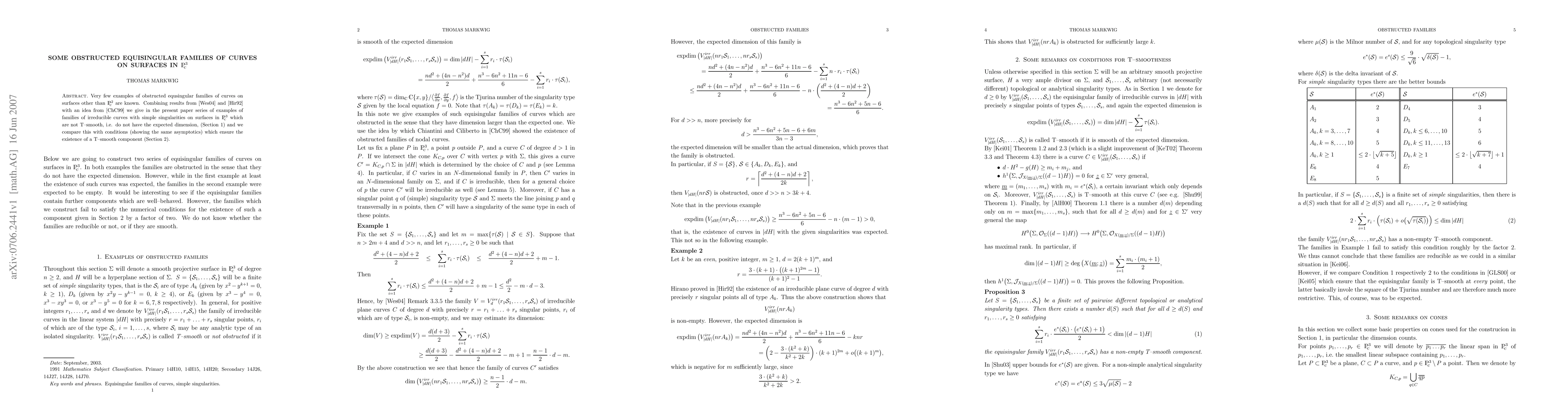 This paper presents several examples of obstructed equisingular families of irreducible curves with simple singularities on surfaces in projective three-space, demonstrating their lack of T-smoothness. It combines results from Westenberger and Hirano with insights from a mathematical paper, and compares these examples to conditions ensuring the existence of T-smooth components.