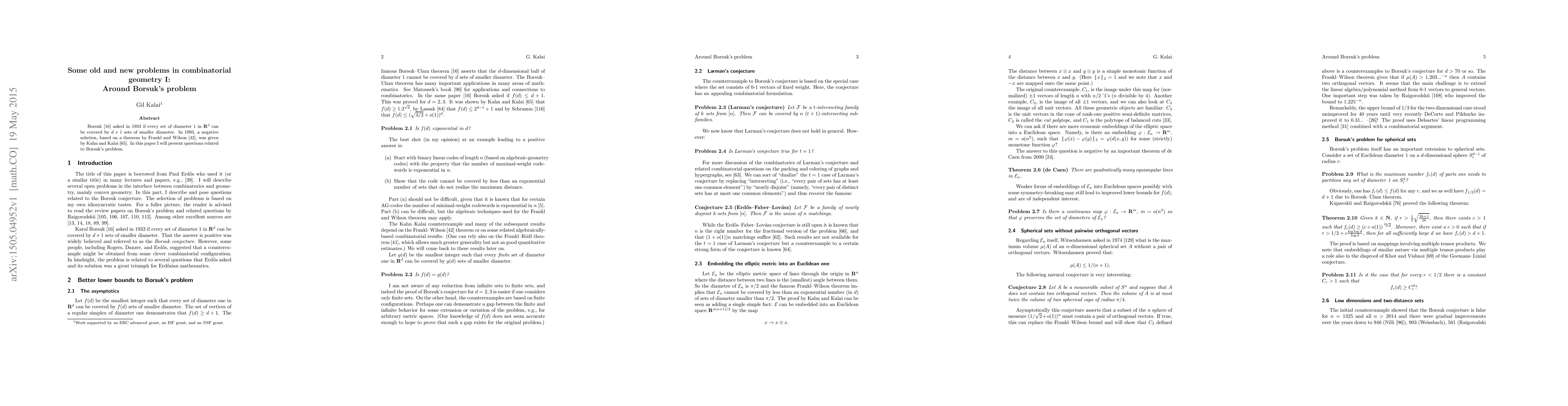 This research paper explores Borsuk's problem in combinatorial geometry, a 80-year-old question about covering sets of diameter 1 in R^d with smaller diameter sets. The paper presents new questions related to the problem, building on previous negative solutions and exploring key implications.