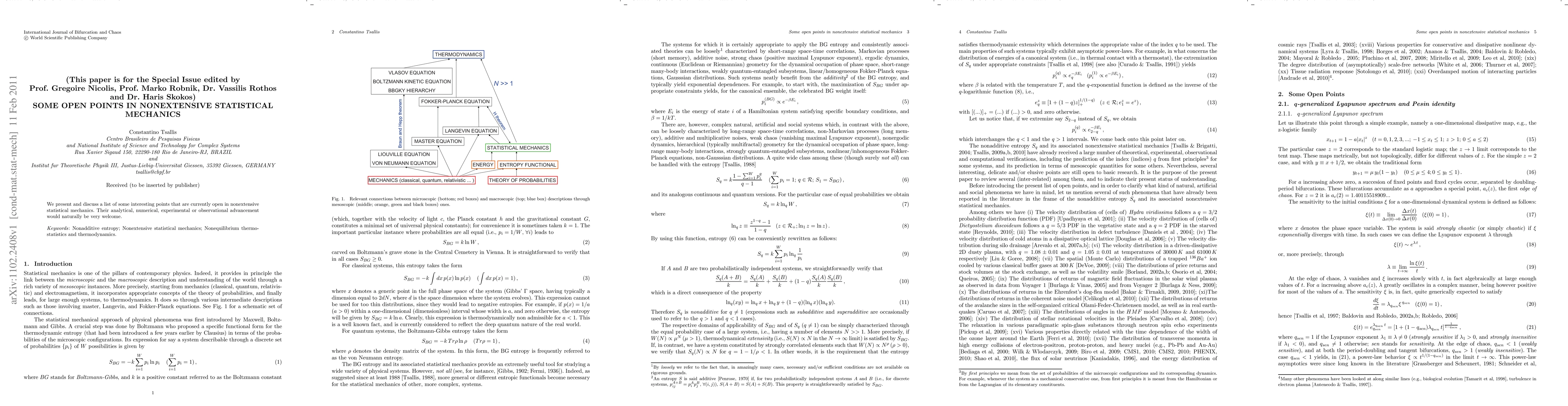 We present and discuss a list of some interesting points that are currently open in nonextensive statistical mechanics. Their analytical, numerical, experimental or observational advancement would naturally be very welcome.