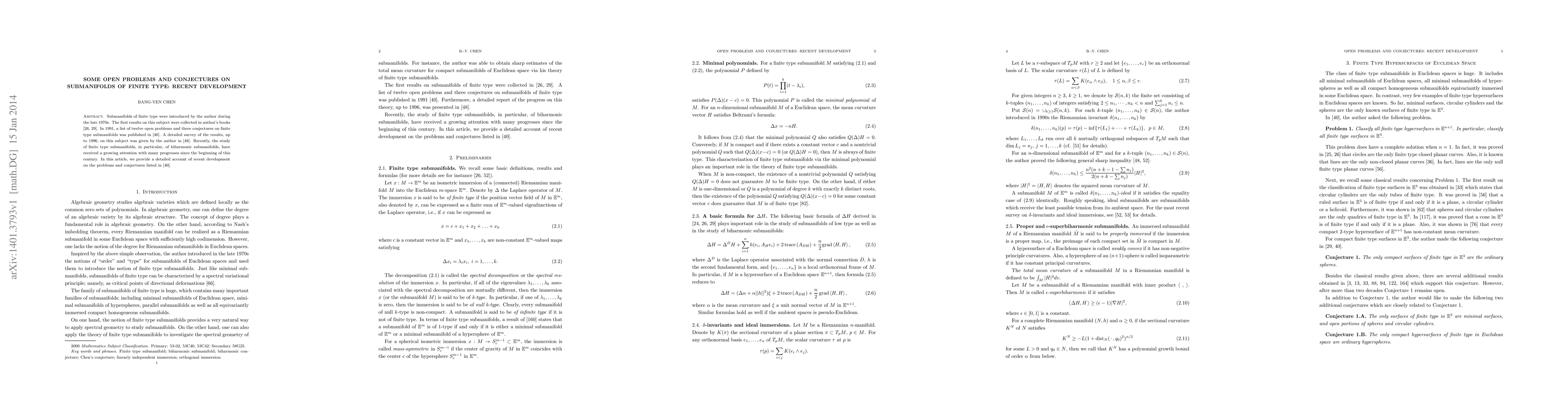 Recent research has made progress on open problems and conjectures about submanifolds of finite type, a concept introduced in the 1970s, with new insights into biharmonic submanifolds.