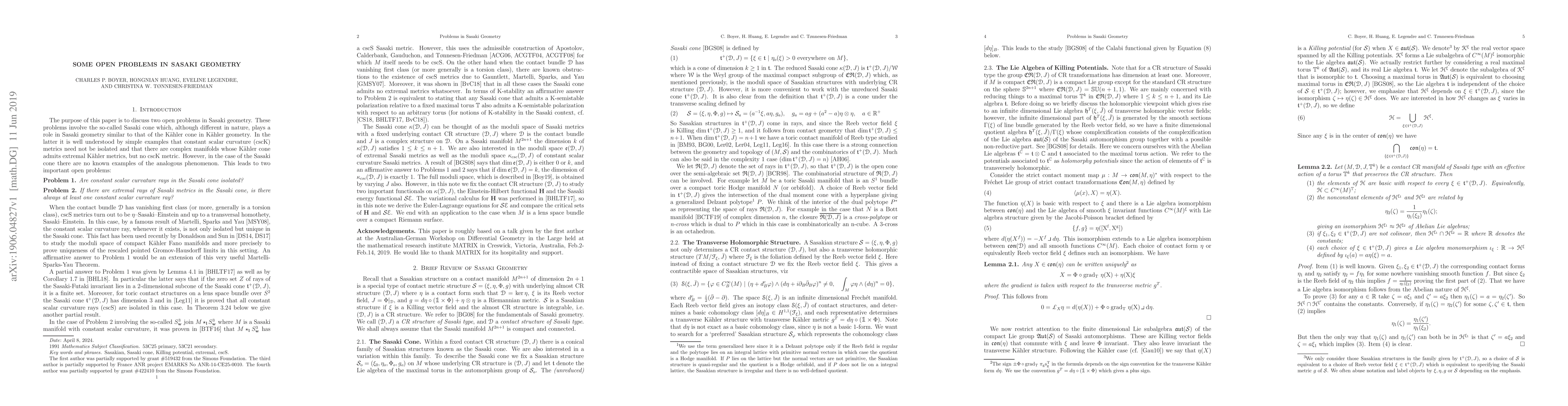 This paper has been submitted to the Proceedings of the Australian-German Workshop on Differential Geometry in the Large held at the mathematical research institute MATRIX in Creswick, Victoria, Australia, Feb.2-Feb.14, 2019. We describe and discuss 2 important open problems in Sasaki geometry.