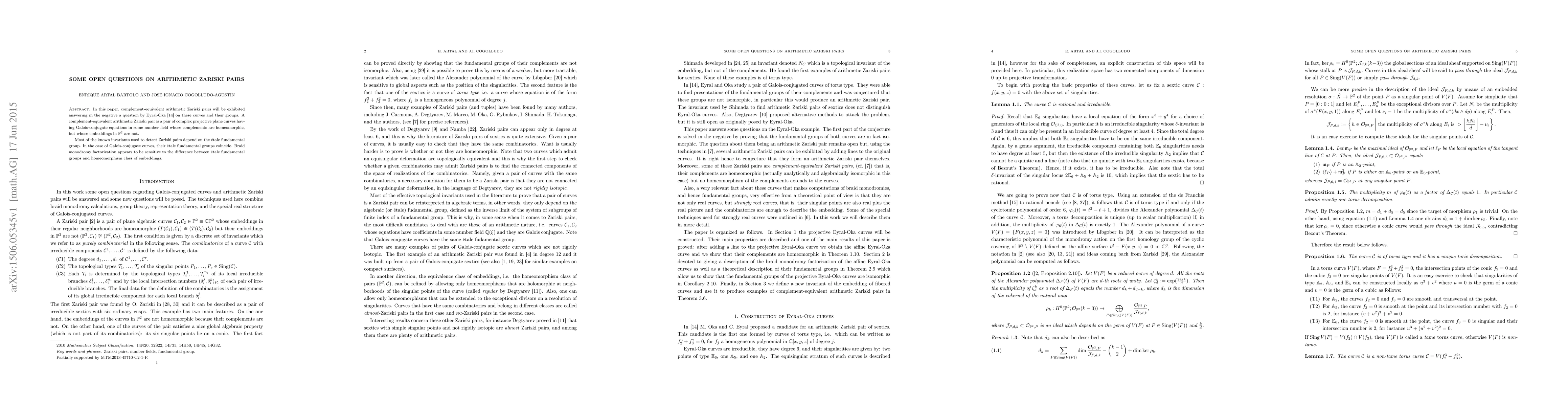 This paper presents complement-equivalent arithmetic Zariski pairs that refute Eyral-Oka's question on these curves and their groups, demonstrating that embeddings in $\mathbb{P}^2$ differ despite coinciding \'etale fundamental groups. It suggests braid monodromy factorization as a distinguishing factor.