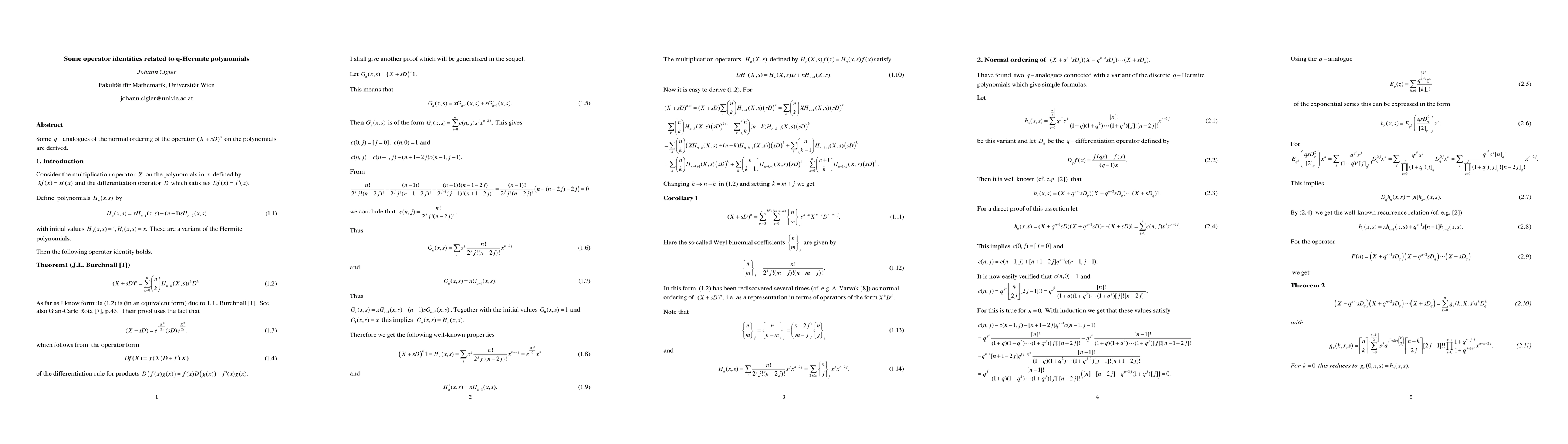 Some $q-$analogues of the normal ordering of the operator $(X+sD)^n$ on the polynomials are derived.