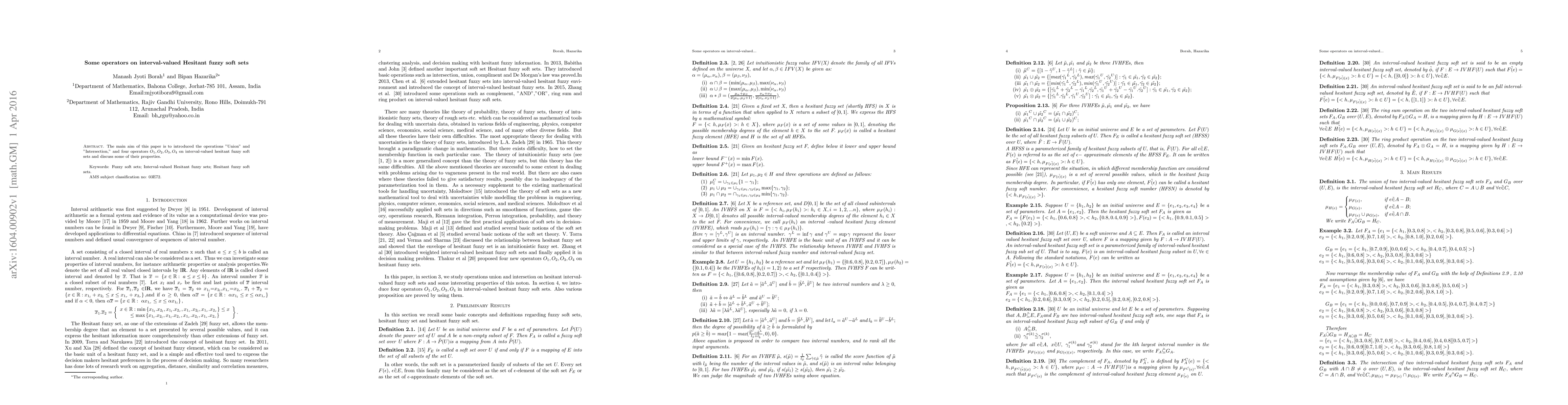 The main aim of this paper is to introduced the operations "Union" and "Intersection," and four operators $O_1, O_2, O_3, O_4 $ on interval-valued hesitant fuzzy soft sets and discuss some of their properties.