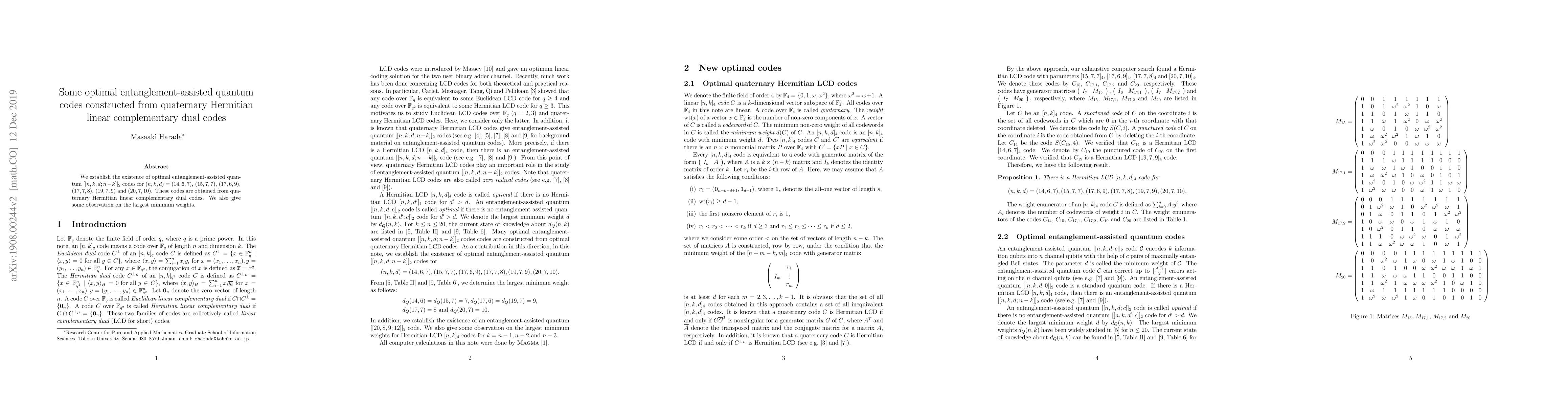 We establish the existence of optimal maximal entanglement entanglement-assisted quantum $[[n,k,d;n-k]]_2$ codes for $(n,k,d)=(14,6,7)$, $(15,7,7)$, $(17,6,9)$, $(17,7,8)$, $(19,7,9)$ and $(20,7,10)$. These codes are obtained from quaternary Hermitian linear complementary dual codes. We also give some observation on the largest minimum weights.