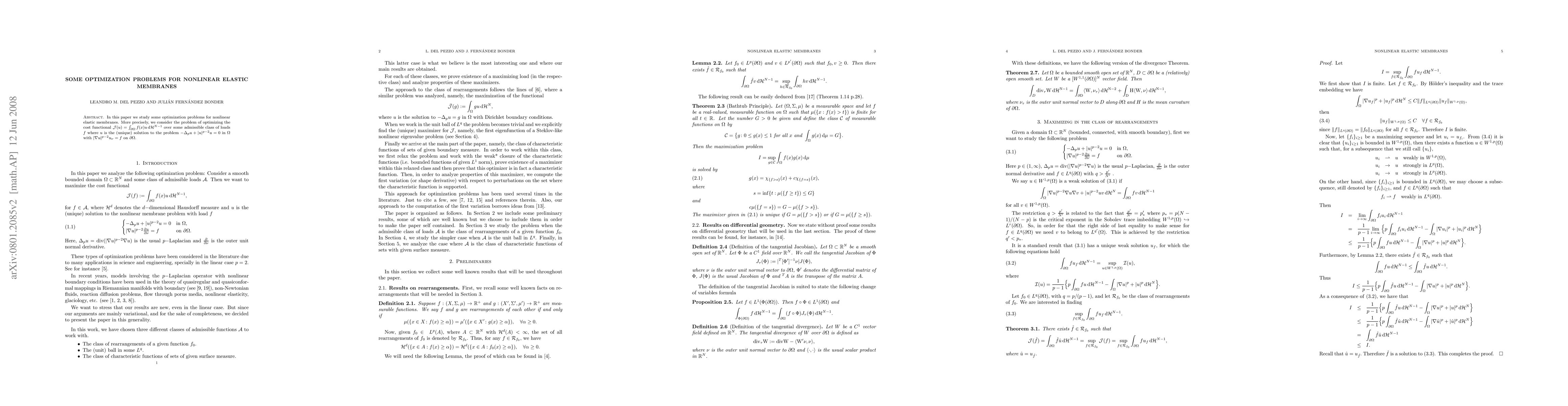 Researchers study optimization problems for nonlinear elastic membranes, focusing on a cost functional that balances energy and load constraints. They explore the implications of their findings on understanding and improving membrane design in various applications.